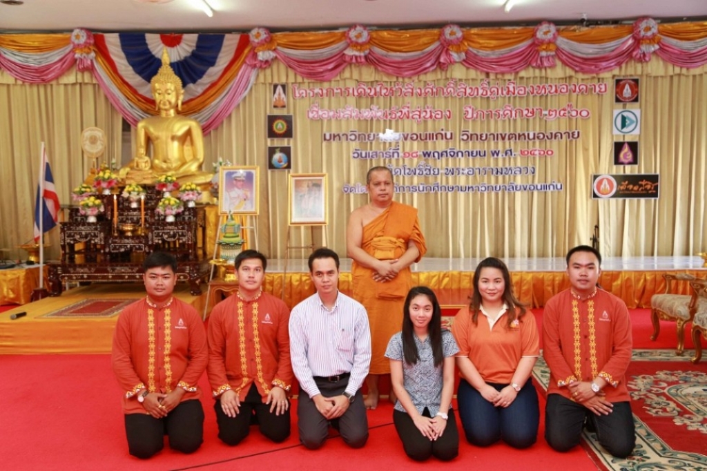 องค์การนักศึกษาและสโมสรนักศึกษา มหาวิทยาลัยขอนแก่น จัดโครงการ “เดินไหว้สิ่งศักดิ์สิทธิ์คู่เมืองหนองคาย เชื่อมสัมพันธ์พี่สู่น้อง ปีการศึกษา 2560” แสดงพลังสามัคคี นำนักศึกษาใหม่ชั้นปีที่ 1 กว่า 700 คน ร่วมใจเดินไหว้ศาลหลักเมืองจังหวัดหนองคาย อนุสาวรีย์ปราบฮ่อ และหลวงพ่อพระใส พระคู่บ้านคู่เมืองที่ชาวจังหวัดหนองคาย