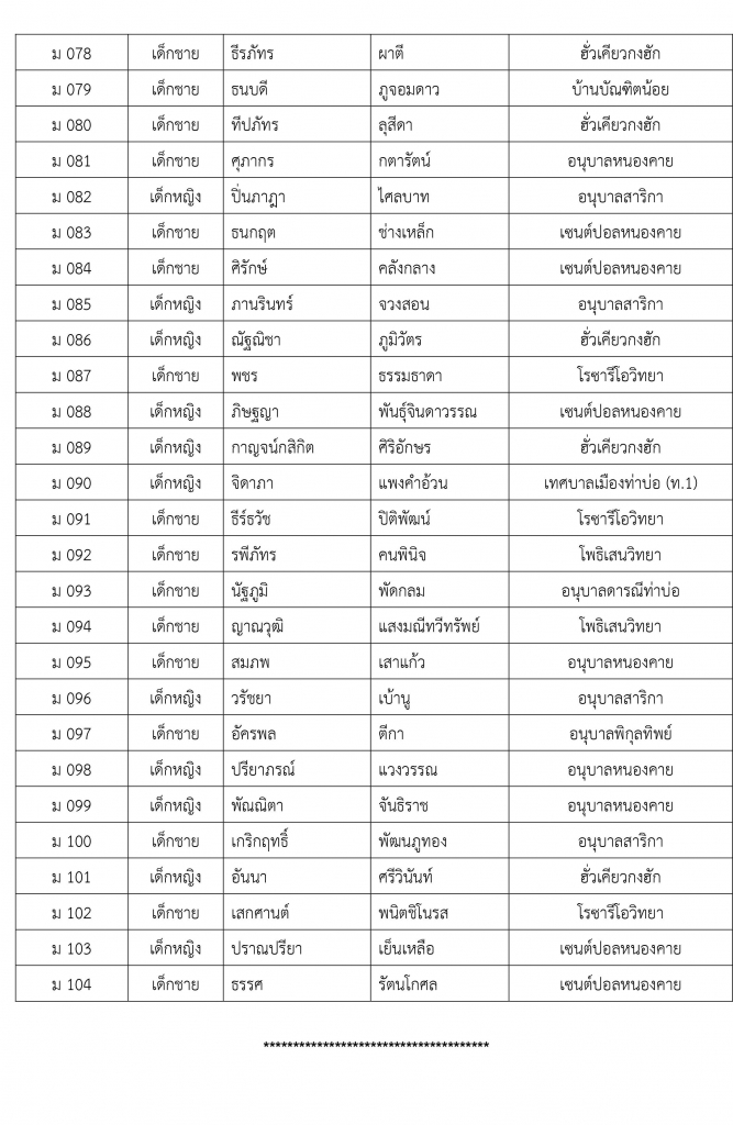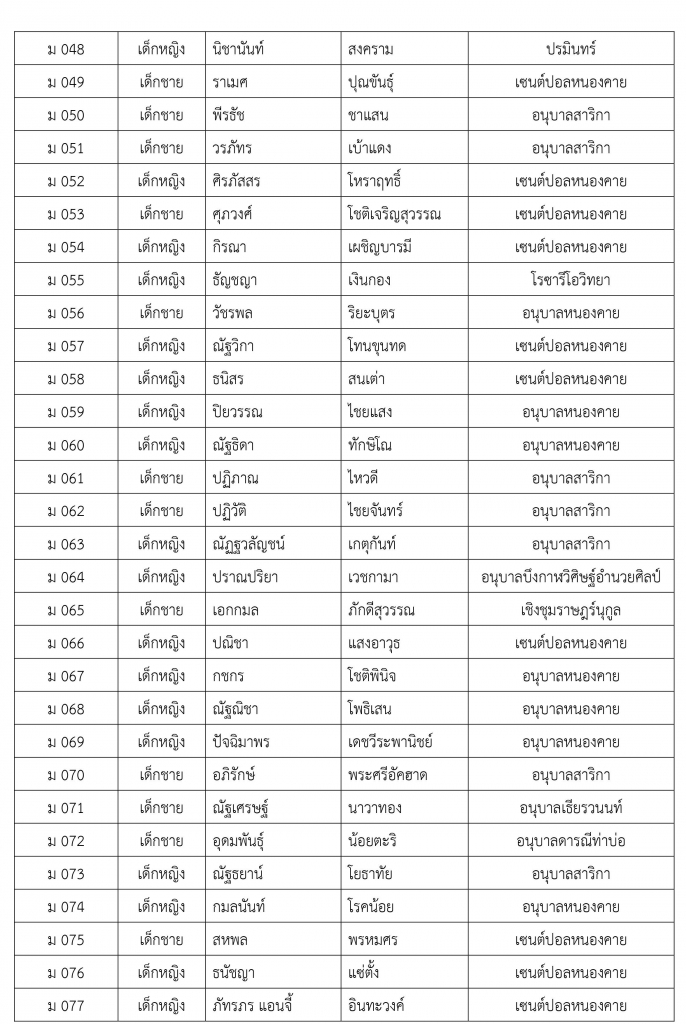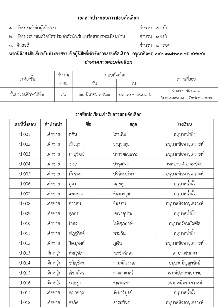 ประกาศรายชื่อผู้มีสิทธิ์เข้ารับการสอบคัดเลือกในการรับสมัครคัดเลือกนักเรียนระดับชั้นประถมศึกษาปีที่ 1 และระดับมัธยมศึกษาปีที่ 1 ประจำปีการศึกษา 2561 โรงเรียนสาธิตมหาวิทยาลัยขอนแก่น วิทยาเขตหนองคาย
