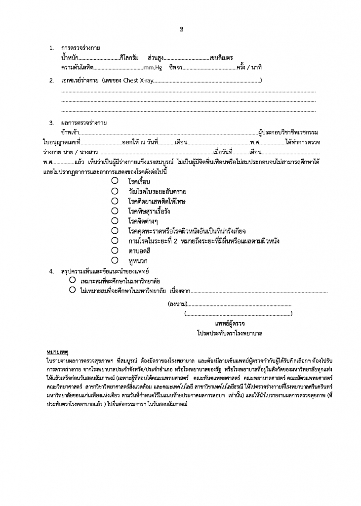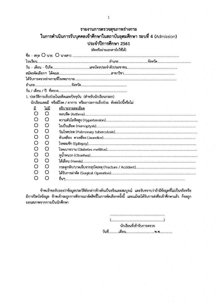 แบบฟอร์มตรวจร่างกาย รอบ 4 Admissions