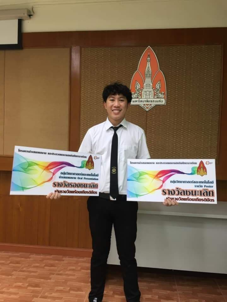เมื่อวันที่ 11 มกราคม 2562 ณ ห้องประชุมบัณฑิตวิทยาลัย มหาวิทยาลัยขอนแก่น นายพงศกร กาฬภักดี นักศึกษาสาขาวิทยาการคอมพิวเตอร์ คณะวิทยาศาสตร์ประยุกต์และวิศวกรรมศาสตร์ มหาวิทยาลัยขอนแก่น วิทยาเขตหนองคาย เข้าร่วมโครงการนำเสนอและประกวดผลงานสหกิจศึกษาอาเซียน ประจำภาคการศึกษาต้น ปีการศึกษา 2561 คว้ารางวัลชนะเลิศการนำเสนอประเภท Poster และรางวัลรองชนะเลิศ การนำเสนอผลงาน Oral presentation กลุ่มวิทยาศาสตร์และเทคโนโลยี ในชื่อผลงาน: เว็บไซต์ แปซิฟิกสตาร์ กรุ๊ป เวียดนาม (WEBSITE PACIFIC STAR GROUP VIETNAM) โดยมี ดร.กานดา ศรอินทร์ อาจารย์ประจำคณะวิทยาศาสตร์ประยุกต์และวิศวกรรมศาสตร์ สาขาวิทยาการคอมพิวเตอร์และสารสนเทศ เป็นอาจารย์ที่ปรึกษา