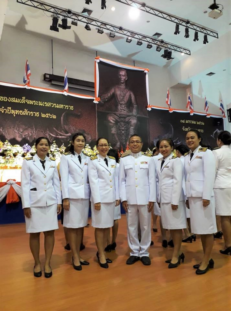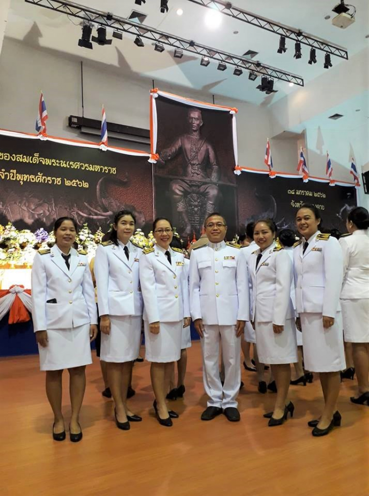 วันที่ 18 มกราคม 2562 เวลา 07.30 น. ณ หอประจักษ์ศิลปาคม ศูนย์ราชการจังหวัดหนองคาย นายละมุณ กั้งจำปา รักษาการแทนผู้อำนวยการวิทยาเขตหนองคาย พร้อมด้วยบุคลากรสายสนับสนุนวิทยาเขตหนองคาย เข้าร่วมพิธีถวายราชสักการะพานพุ่มดอกไม้สด เนื่องในวันยุทธหัตถีของสมเด็จพระนเรศวรมหาราช ประจำปี 2562 โดยมีนายรณชัย จิตรวิเศษ ผู้ว่าราชการจังหวัดหนองคาย เป็นประธานในพิธี นำผู้แทนจากส่วนราชการ หน่วยงานรัฐวิสาหกิจ อำเภอ ภาคเอกชน โรงเรียน วิทยาลัย สมาคม และกลุ่มพลังมวลชน ถวายความเคารพและกล่าวถวายความจงรักภักดีและเชิดชูเกียรติ วีรกรรมอันกล้าหาญของสมเด็จพระนเรศวรมหาราชที่ทรงกอบกู้เอกราชของชาติไทย