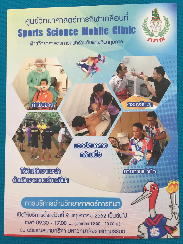 ระหว่างวันที่ 8-20 พฤษภาคม 2562 ผู้ช่วยศาสตราจารย์ ดร.ประภาพิมนต์ ปริวัติ พร้อมด้วย ผู้ช่วยศาสตราจารย์ ดร.อชิระ หิรัญตระกูล อาจารย์ประจำสาขาวิชาวิทยาศาสตร์การกีฬาและการออกกำลังกาย คณะวิทยาศาสตร์ประยุกต์และวิศวกรรมศาสตร์ ร่วมกับฝ่ายกีฬาภูมิภาค การกีฬาแห่งประเทศไทย กระทรวงการท่องเที่ยวและกีฬา ปฏิบัติหน้าที่ให้บริการด้านวิทยาศาสตร์การกีฬาและเวชศาสตร์การกีฬา ในการจัดตั้งศูนย์ Sport Science Performance Center ในการแข่งขันกีฬาเยาวชนแห่งชาติ ครั้งที่ 35 บุรีรัมป์เกมส์ ณ จังหวัดบุรีรัมป์