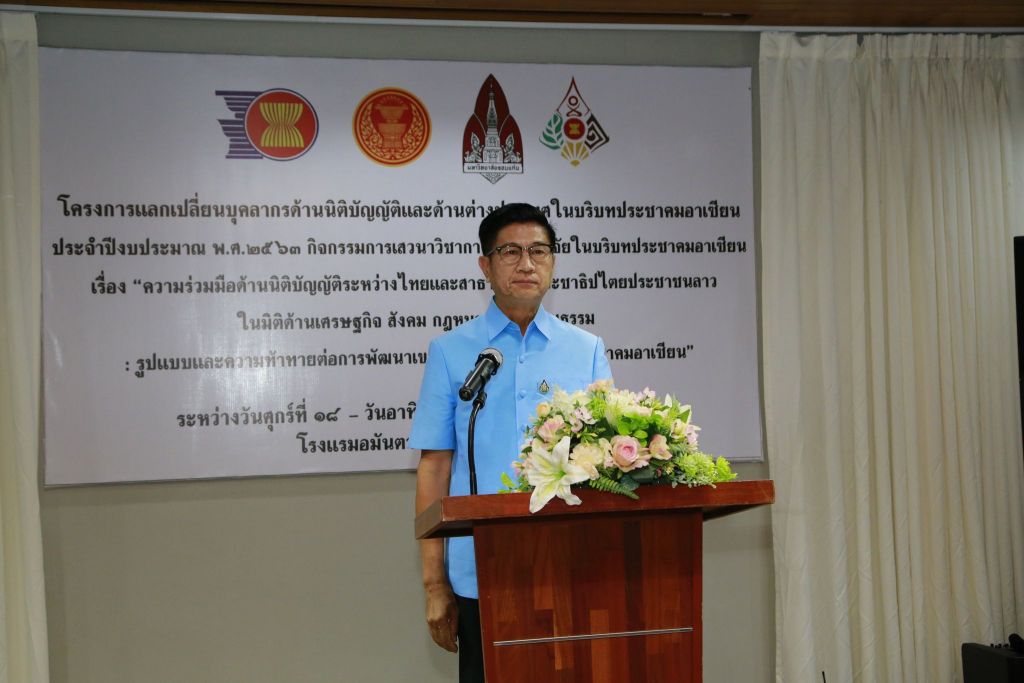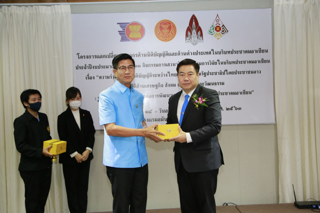 เมื่อวันที่ 18-20 กันยายน 2563 ณ โรงแรมอมันตา อำเภอเมือง จังหวัดหนองคาย คณะกรรมการประชาคมอาเซียนของส่วนราชการสังกัดรัฐสภา ศูนย์ประชาคมอาเซียนของสำนักงานเลขาธิการสภาผู้แทนราษฎร นำโดย นายคุณวุฒิ ตันตระกูล รองเลขาธิการสภาผู้แทนราษฎร ร่วมกับศูนย์อาเซียนศึกษา มหาวิทยาลัยขอนแก่น นำโดยรองศาสตราจารย์ ดร.อภิรัตน์ เพ็ชรศิริ ที่ปรึกษากฎหมายต่างประเทศมหาวิทยาลัยขอนแก่น และคณะนิติศาสตร์และรัฐศาสตร์ มหาวิทยาลัยแห่งชาติลาว จัดการเสวนาวิชาการด้านการวิจัยในบริบทประชาคมอาเซียน เรื่อง “ความร่วมมือด้านนิติบัญญัติระหว่างไทยและสาธารณรัฐประชาธิปไตยประชาชนลาว ในมิติด้านเศรษฐกิจสังคม กฎหมาย และวัฒนธรรม : รูปแบบและความท้าทายต่อการพัฒนาเขตเศรษฐกิจพิเศษของประชาคมอาเซียน” ขึ้นในระหว่างวันศุกร์ที่ ๑๘ – วันอาทิตย์ที่ ๒๐ กันยายน พ.ศ. ๒๕๖๓ณ โรงแรมอมันตรา จังหวัดหนองคายในการนี้ นายรณชัย จิตรวิเศษ ผู้ว่าราชการจังหวัดหนองคายให้เกียรติเป็นประธานในพิธีเปิดการเสวนาฯ
