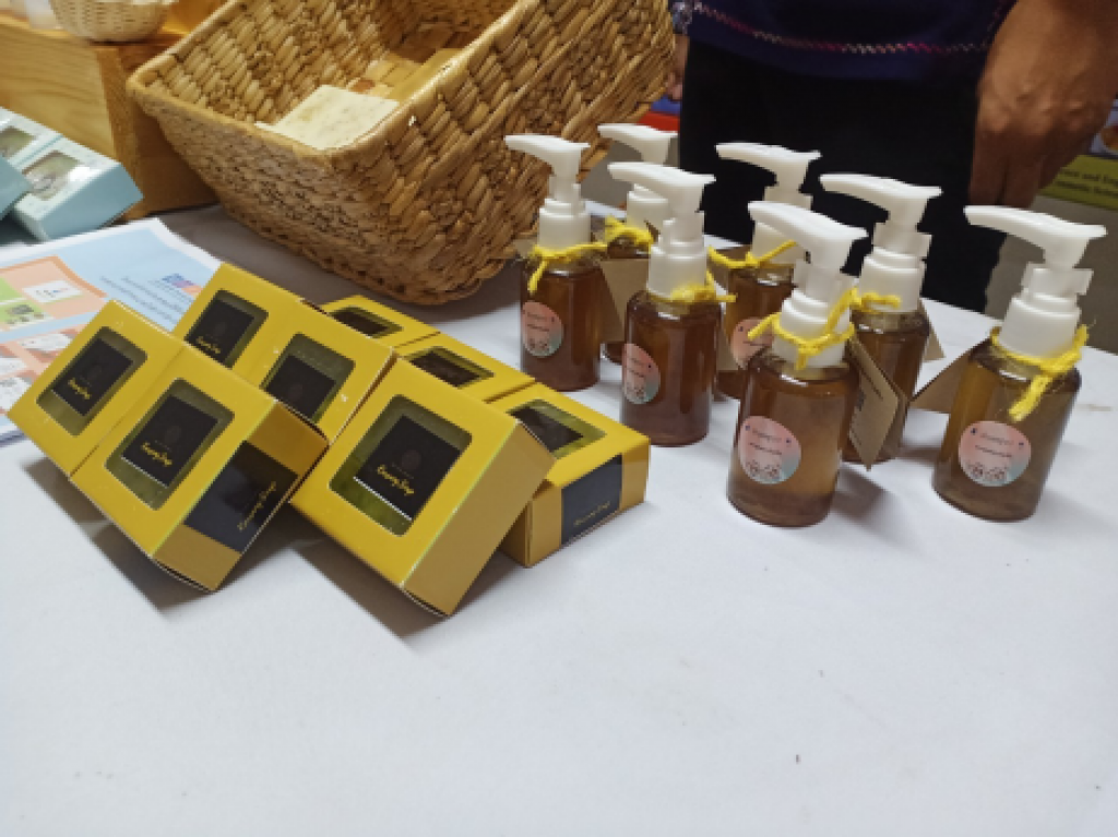 วันเสาร์ที่ 19 กันยายน 2563 โครงการจ้างงานประชาชนระยะที่ 2 กลุ่มสุขภาพ ความงามและสิ่งแวดล้อม นำโดย ผู้ช่วยศาสตราจารย์ ดร.มัลลิกา จันทรังษี ได้จัดแสดงผลงานนวัตกรรมที่เกิดจากการนำทรัพยากรธรรมชาติที่มีในชุมชน เช่น ฟักข้าว ตะไคร้ อัญขัน มะกรูด และผักกระสัง มาพัฒนาเป็นผลิตภัณฑ์เพื่อสุขภาะและความงาม โดยในงานได้รับเกียรติจาก รองศาสตราจารย์ ดร.ศักรินทร์ นนทพจน์ รักษาการรองคณบดีฝ่ายวิจัยและนวัตกรรม คณะสหวิทยาการ มหาวิทยาลัยขอนแก่น วิทยาเขตหนองคาย เป็นประธานเปิดงานแสดงผลงานจากผู้เข้าร่วมโครงการจำนวน 9 ราย โดยมีจำนวนผลงานที่ร่วมนำเสนอทั้งสิ้น 9 รายการ ในงานนี้ได้รับความสนใจเป็นอย่างมากจากบุคคลภายในและนอกมหาวิทยาลัย ถือว่าเป็นโครงการที่สามารถตอบโจทย์ตามวัตถุประสงค์ที่ตั้งไว้เป็นอย่างดีและเพื่อสร้างงานรองรับผลกระทบจากสถานการณ์วิกฤตและเสริมศักยภาพให้กับกำลังแรงงานสมัยใหม่ได้อีกด้วย