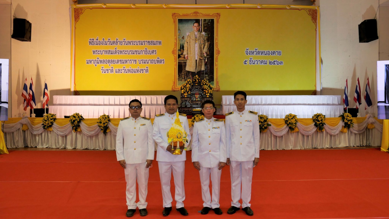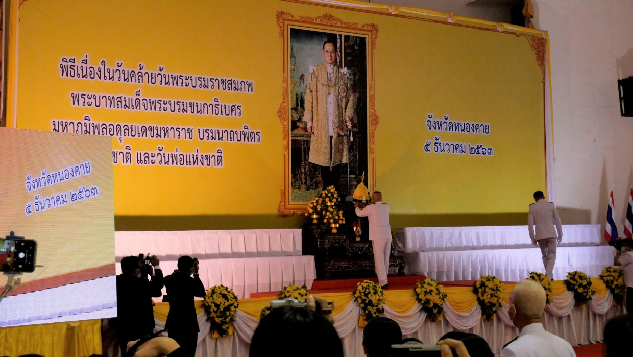 จากนั้นผู้ว่าราชการจังหวัดหนองคายเป็นประธานได้นำส่วนราชการ ทหาร ตำรวจ องค์กร มูลนิธิ ร่วมประกอบพิธีถวายพานพุ่มดอกไม้สดพระบาทสมเด็จพระบรมชนกาธิเบศร มหาภูมิพลอดุลยเดชมหาราช บรมนาถบพิตร และกล่าวถวายราชสดุดีน้อมรำลึกในพระมหากรุณาธิคุณ เพื่อร่วมกันแสดงออกถึงความจงรักภักดี ณ ห้องประชุมประจักษ์ศิลปาคม