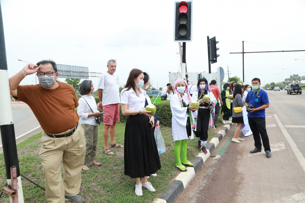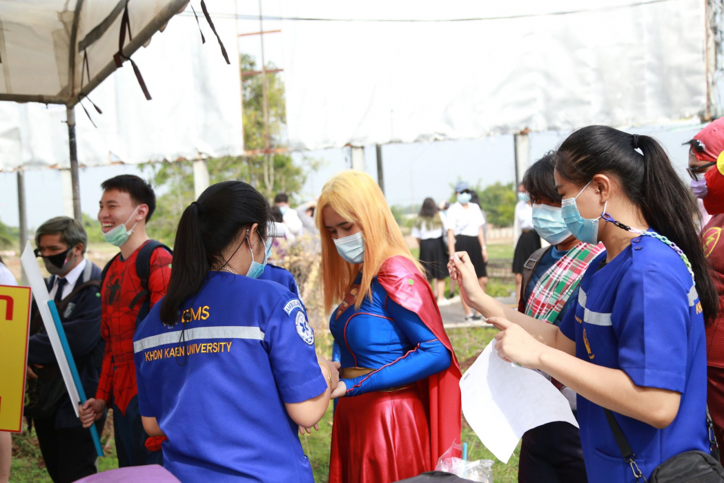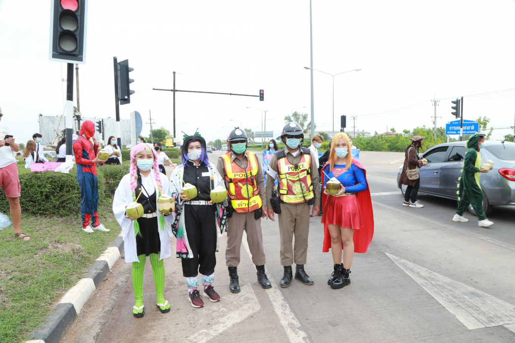 ผู้ช่วยศาสตราจารย์ดร.ณัฐพล ไตรเพิ่ม รองคณบดีคณะสหวิทยาการ นำนักศึกษาคณะสหวิทยาการ มหาวิทยาลัยขอนแก่น วิทยาเขตหนองคาย แต่งกายด้วยชุดคอสเพลย์ ชุดเหล่าซูเปอร์ฮีโร่ สร้างสีสัน ร่วมรณรงค์ขับขี่ปลอดภัยในช่วงเทศกาลสงกรานต์ ก่อนร่วมเดินรณรงค์ได้มีการตรวจวัดอุณภูมิ สวมหน้ากากอนามัยนักศึกษาเพื่อป้องกันโรคโควิด-19 และมีการแจกน้ำดื่ม มะพร้าวน้ำหอม ข้าวโซย ลูกอม หน้ากากอนามัย และผ้าเย็น เดินแจกจ่ายให้กับผู้ใช้รถใช้ถนน ซึ่งได้รับการตอบรับที่ดีจากผู้ใช้รถใช้ถนนทุกคน ต่างให้ความสนใจอย่างมาก