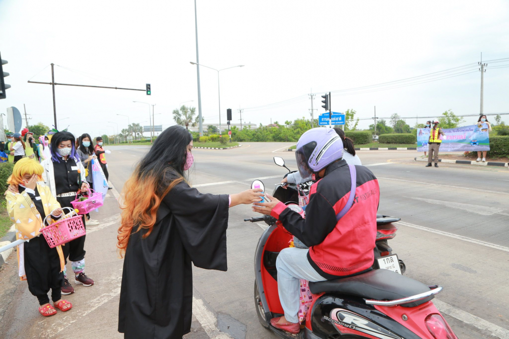 นศ.คณะสหวิทยาการ ร่วมรณรงค์ขับขี่ปลอดภัยในเทศกาลสงกรานต์ 64