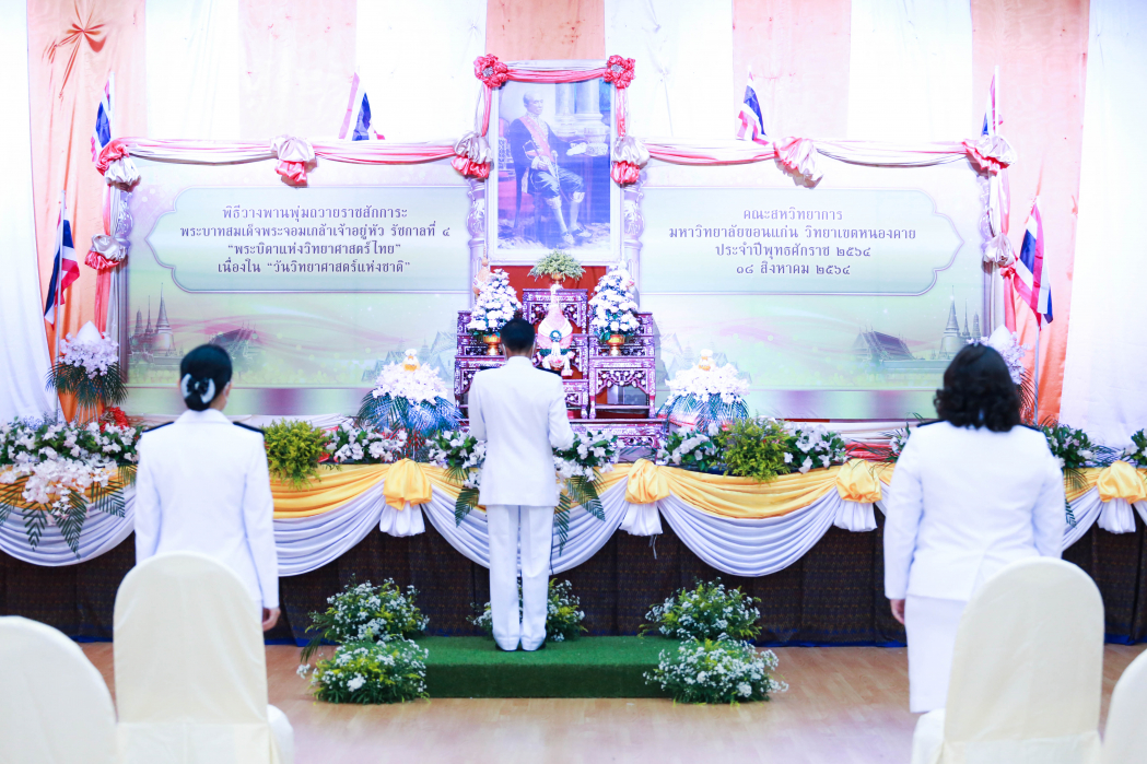 เนื่องในวัน "วิทยาศาสตร์แห่งชาติ" ประจำปีพุทธศักราช 2564 คณะสหวิทยาการ มหาวิทยาลัยขอนแก่น วิทยาเขตหนองคาย ได้ดำเนินการจัดพิธีวางพานพุ่มและถวายราชสักการะพระบาทสมเด็จพระจอมเกล้าเจ้าอยู่หัว รัชกาลที่ 4 "พระบิดาแห่งวิทยาศาสตร์ไทย" โดยได้รับเกียรติจากท่าน ผศ.ดร.เกียรติ แสงอรุณ คณบดีคณะสหวิทยาการ เป็นประธานในพิธีในวันที่ 18 สิงหาคม 2564 เวลา 07.00 น. - 08.30 น. ณ ห้องประชุม NK 2217 อาคารเรียนรวมและปฏิบัติการ 1