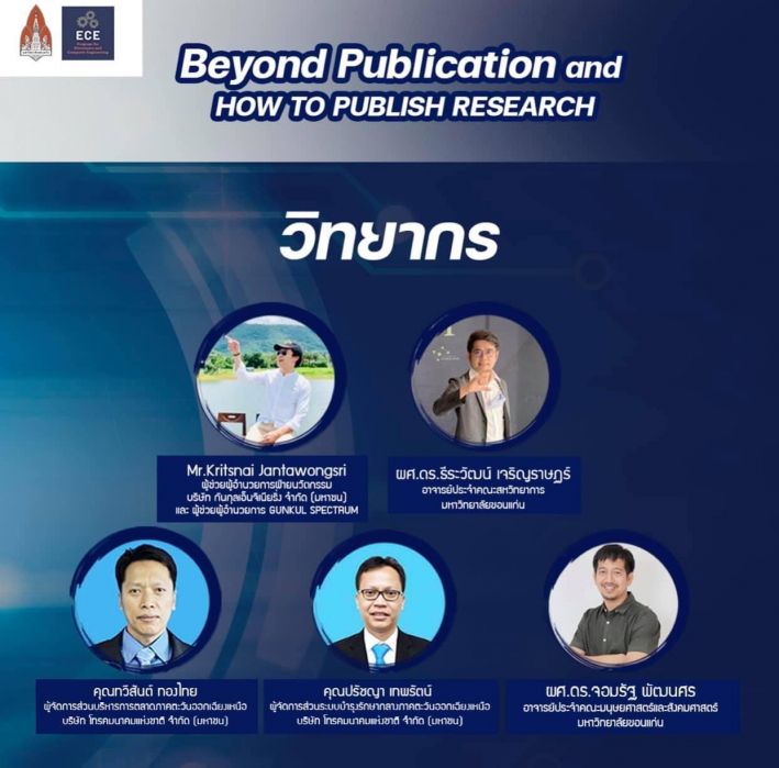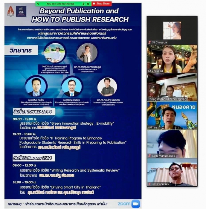 เมื่อวันที่ 21-22 สิงหาคม 2564 หลักสูตรระดับปริญญาโท และปริญญาเอก สาขาวิศวกรรมศาสตร์ไฟฟ้าและคอมพิวเตอร์ คณะสหวิทยาการ มหาวิทยาลัยขอนแก่น วิทยาเขตหนองคาย ได้จัดโครงการ Beyond Publication and How to Publish Research ซึ่งเป็นการส่งเสริมและพัฒนางานวิจัยของนักศึกษาระดับบัณฑิตศึกษา โดยมีวัตถุประสงค์ ดังนี้