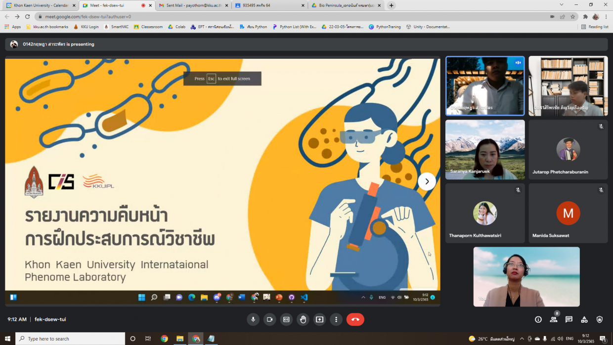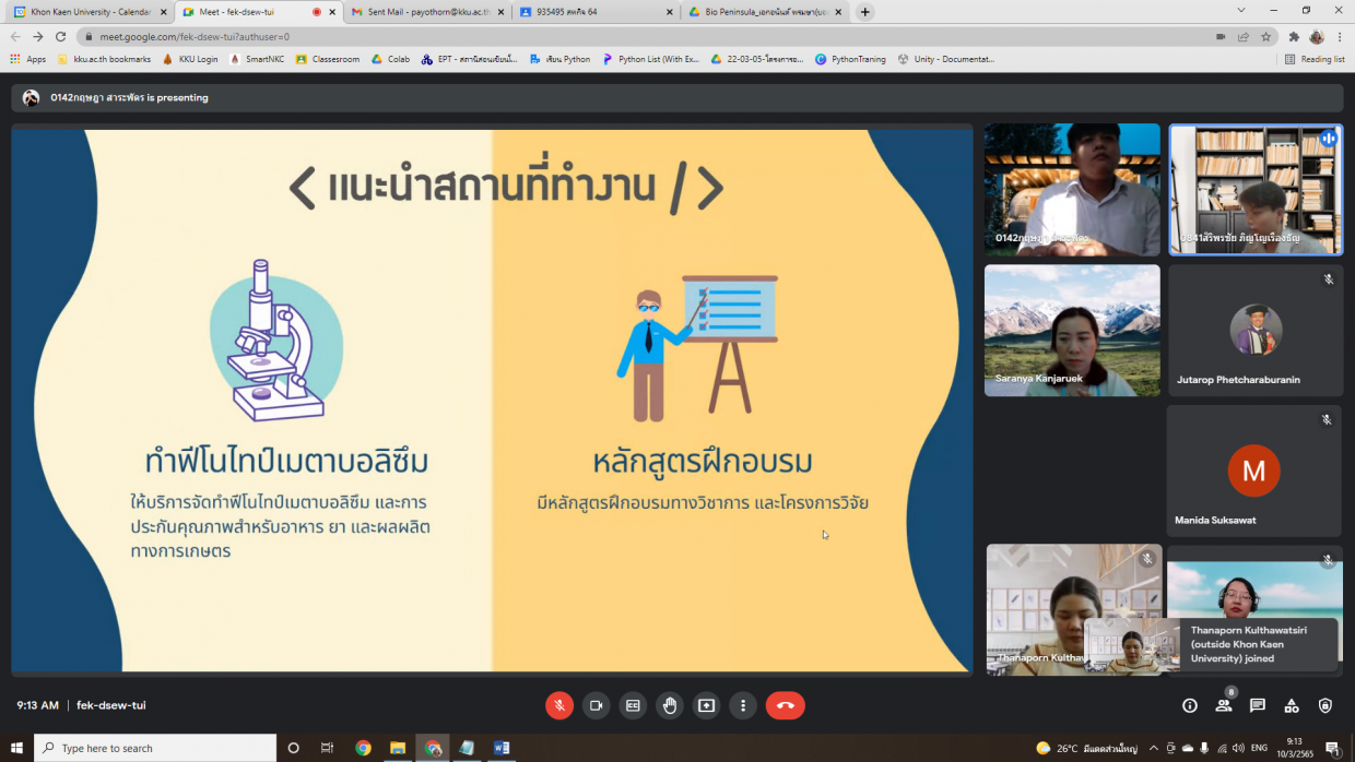 กิจกรรมการนิเทศนักศึกษาสหกิจศึกษาแบบออนไลน์ ร่วมกับห้องปฏิบัติการฟีโนมนานาชาติแห่งมหาวิทยาลัยขอนแก่น