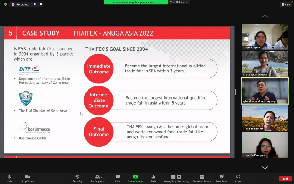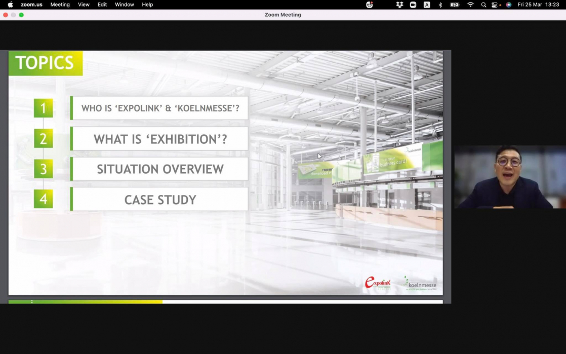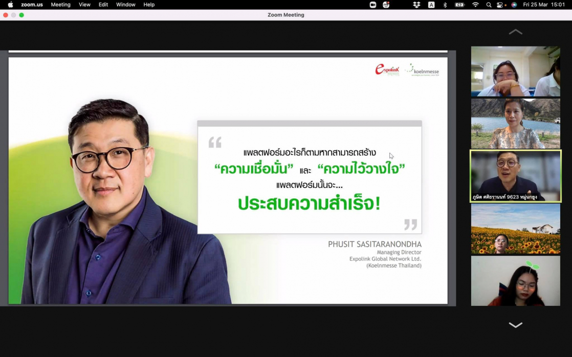 การรับฟังการบรรยายในครั้งนี้นักศึกษาได้มุมมองจากวิทยากรในการบริหารจัดการงานแสดงสินค้าและนิทรรศการ ทั้งในส่วนรูปแบบการทำการตลาด Exhibitionและการบริหารจัดการทรัพยาบุคคลในบริษัท นอกจากนั้นวิทยากรยังได้มีการแนะนำการรับสมัครนักศึกษาฝึกงาน/สหกิจศึกษา/พนักงานของบริษัทExpolink Global Network กล่าวถึงคุณสมบัติที่ควรเตรียมพร้อมก่อนการสมัครงาน พร้อมทั้งให้แนวคิดการทำงานและการวางแผนชีวิตให้แก่นักศึกษา การบรรยายครั้งนี้เป็นรูปแบบออนไลน์มีการเปิดโอกาสให้กับผู้ที่สนใจจากภายนอกเข้าร่วมรับฟังแลกเปลี่ยนประสบการณ์ ซึ่งในช่วงปิดท้ายมีการสรุปและแชร์ความรู้แง่คิดที่ได้จากการบรรยายครั้งนี้อีกด้วย