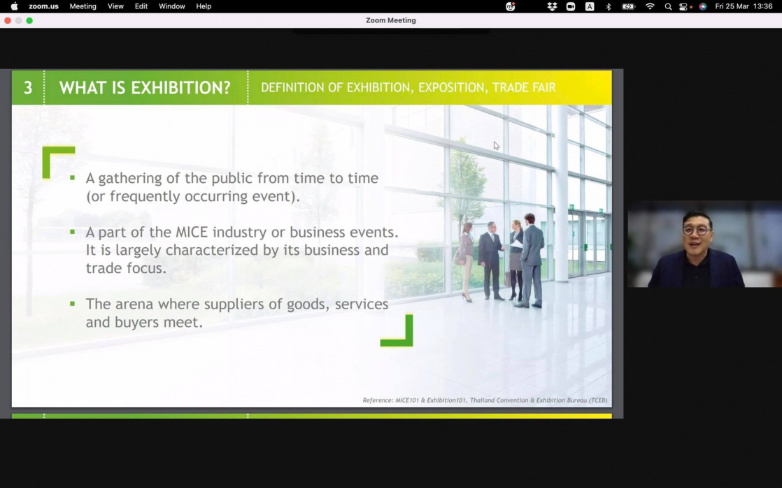 หลักสูตรการท่องเที่ยวและอุตสาหกรรมการบริการ คณะสหวิทยาการ จัดโครงการบรรยายหัวข้อ “Exhibition Business: Impact of the Covid-19 and Business Sector Transformation”