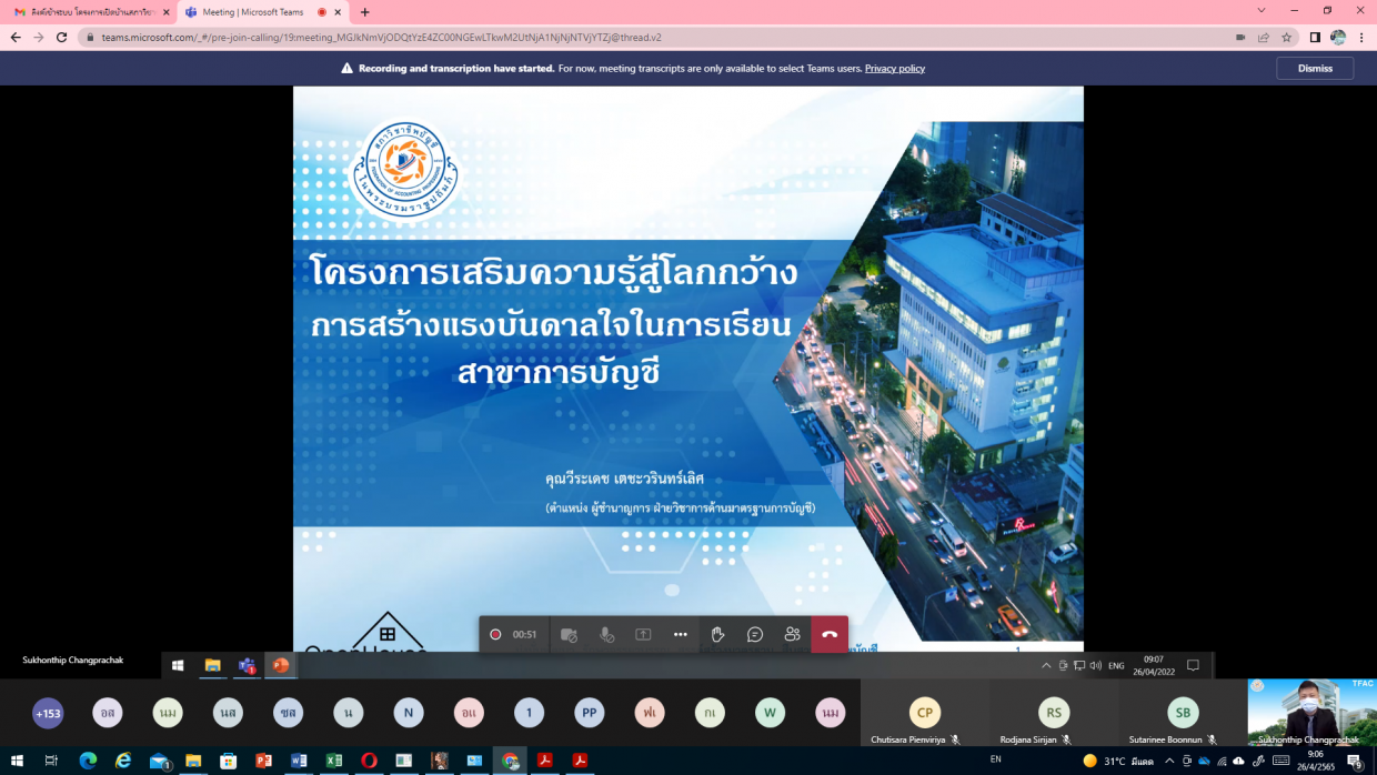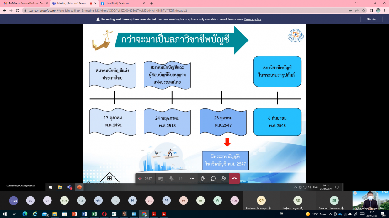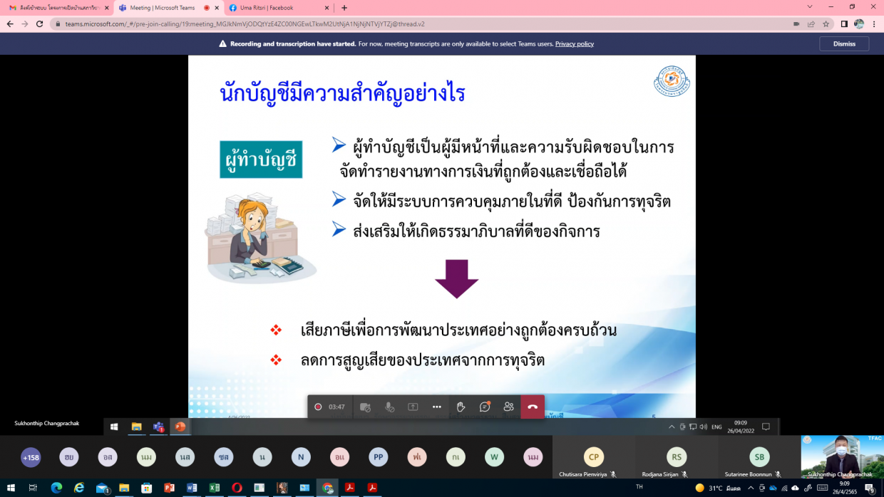 ในวันอังคารที่ 26 เมษายน 2565 เวลา 09.00-12.00 น. หลักสูตรบัญชีบัณฑิต คณะสหวิทยาการ มหาวิทยาลัยขอนแก่น ได้นำนักศึกษาชั้นปีที่ 2 เข้าร่วมโครงการเปิดบ้านสภาวิชาชีพบัญชี (TFAC Open House) ผ่านช่องทางออนไลน์โปรแกรม Microsoft teams ซึ่งจัดโดยสภาวิชาชีพบัญชีในพระบรมราชูปถัมภ์ โดยมีคุณวีระเดช เตชะวรินทร์เลิศ ตําแหน่ง ผู้ชํานาญการ ฝ่าย วิชาการด้านมาตรฐานการ บัญชี บรรยายในหัวข้อดังต่อไปนี้
