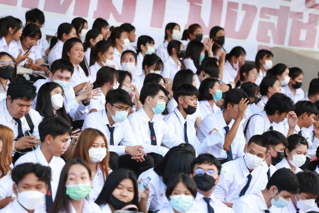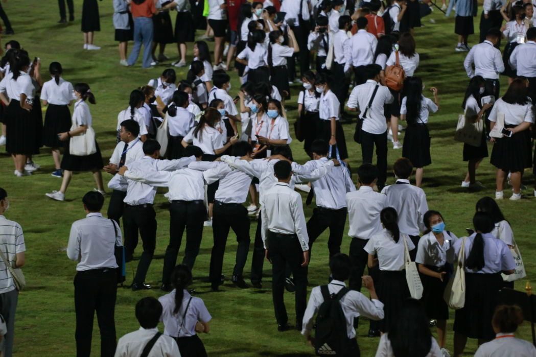 เพื่อให้สอดคล้องกับมาตรการป้องกันการแพร่ระบาดของโรคติดเชื้อไวรัสโคโรนา 2019 (COVID-19)ผู้เข้าร่วมกิจกรรมทุกคนจะต้องสวมหน้ากากอนามัย ผู้เข้าร่วมกิจกรรมแสดงผลการฉีดวัคซีนครบ 2 เข็ม หรือมีผลตรวจ ATK หรือ RT-PCR ภายใน 72 ชั่วโมงก่อนเข้าร่วมกิจกรรม และจะมีการวัดอุณหภูมิผู้เข้าร่วมกิจกรรมในครั้งนี้กิจกรรมมาเถิดมามุ่งสู่ชัย ร่วมใจ From KKU (วิทยาเขตหนองคาย) เป็นกิจกรรมที่น้องใหม่ทุกคน จะได้พิสูจน์ความเป็นนักศึกษามหาวิทยาลัยขอนแก่น ของตนเองหลังจากได้ร่วมกิจกรรม การรับน้อง อย่างสร้างสรรค์มาอย่างหลากหลาย ตลอดช่วงระยะเวลาที่ได้เข้ามาอยู่ในมหาวิทยาลัยขอนแก่น ก่อนการเปิดภาคเรียน กิจกรรมนี้นับเป็นกิจกรรมอันยิ่งใหญ่ที่สร้างความภาคภูมิใจแก่ชาวมหาวิทยาลัยขอนแก่นทุกคน ในกิจกรรมร้องเพลงร่วมสถาบันนั้นมีนักศึกษาใหม่ นักศึกษารุ่นพี่ และอาจารย์เข้ามามีส่วนร่วม ในการดูแลและให้กำลังใจน้องอย่างใกล้ชิด โดยวัตถุประสงค์ของกิจกรรมร้องเพลงประจำสถาบัน (เชียร์กลาง) นี้เพื่อให้น้องใหม่ร้องเพลงสถาบันได้อย่างถูกต้อง เรียนรู้การปรับตัวให้เข้ากับผู้อื่น มีความอดทนเสียสละ เกิดความรักระหว่างน้องใหม่ด้วยกัน น้องใหม่กับรุ่นพี่ ตลอดจนเกิดความภาคภูมิใจในมหาวิทยาลัยขอนแก่น โดยมีน้องใหม่เข้าร่วมกิจกรรมในครั้งนี้จำนวน 620 คน