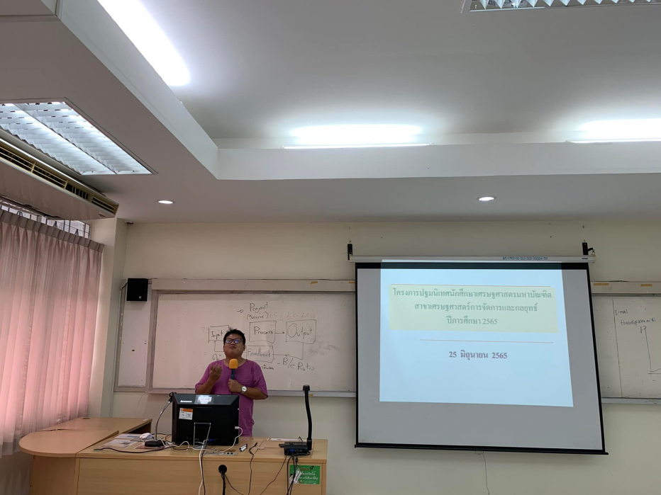 วันที่ 25 มิถุนายน 2565 หลักสูตรเศรษฐศาสตรมหาบัณฑิต สาขาเศรษฐศาสตร์การจัดการและกลยุทธ์ คณะสหวิทยาการ มหาวิทยาลัยขอนแก่น วิทยาเขตหนองคาย จัดโครงการปฐมนิเทศน์และเตรียมความนักศึกษาใหม่ ปีการศึกษา 2565 โดยมีรองศาสตราจารย์ ดร.ธเนศ วัฒนกูล หัวหน้าสาขาสังคมศาสตร์ และประธานหลักสูตร รองศาสตราจารย์ ดร.ศักรินทร์ นนทพจน์ เลขานุการหลักสูตร ผู้ช่วยศาสตราจารย์ ดร.มัลลิกา สมพลกรัง อาจารย์ประจำหลักสูตร รวมทั้ง มีการให้คำแนะนำเกี่ยวกับบริการของบัณฑิตวิทยาลัย โดยคุณอารีย์ อินทร์เสาร์ และการให้บริการของห้องสมุด การใช้และสืบค้นฐานข้อมูลวิจัยด้านสังคมศาสตร์ โดยคุณกนกวรรณ ชินอ่อน และมีการแลกเปลี่ยนเรียนรู้ประสบการณ์การเรียนในหลักสูตร จากคุณแสงระวี วรรณกุล เศรษฐศาสตรมหาบัณฑิต รุ่นที่ 1 การจัดอบรมครั้งนี้มีคณาจารย์ วิทยากร และนักศึกษาเข้าร่วมกว่า 20 คน