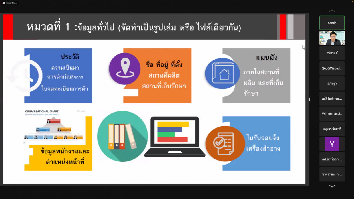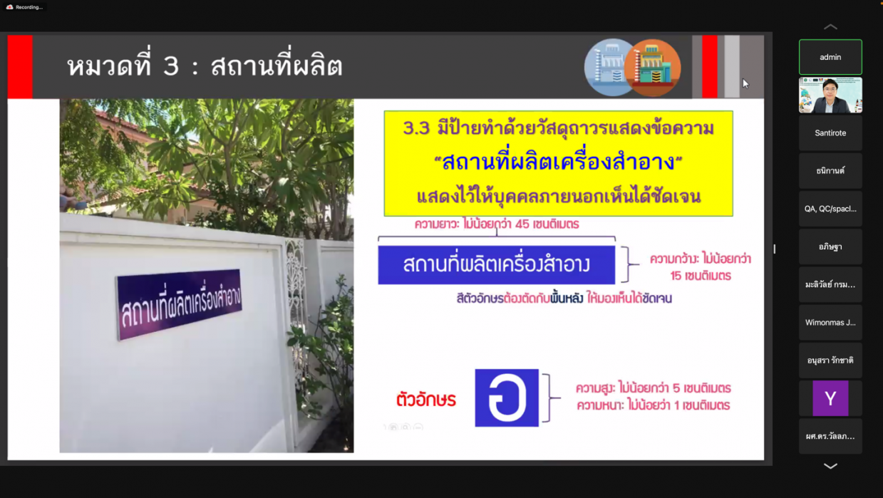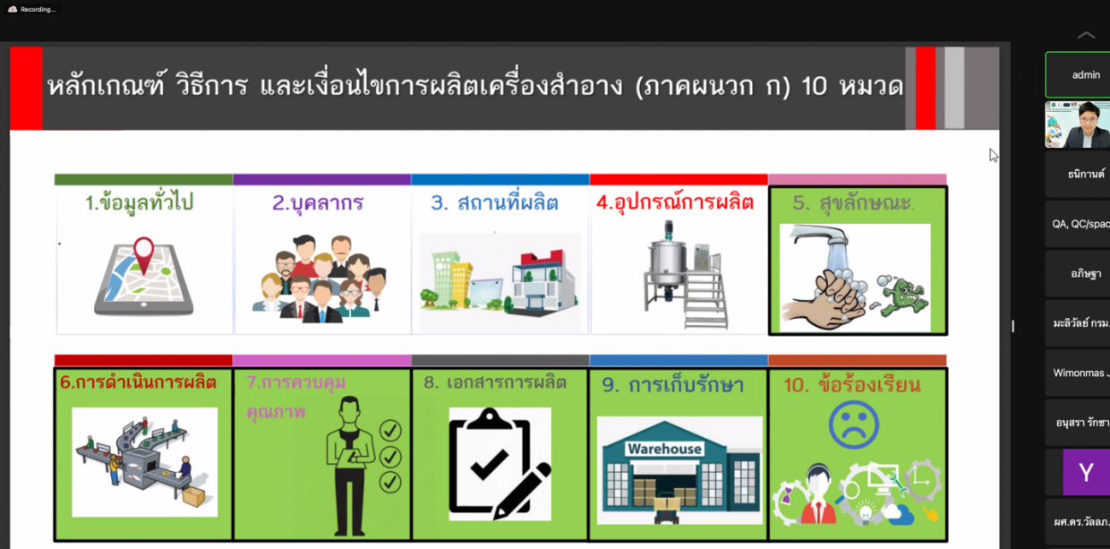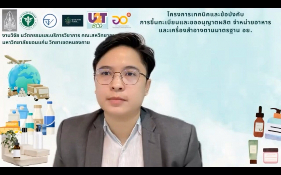 โครงการเทคนิคและข้อบังคับการขึ้นทะเบียนและขออนุญาตผลิต จำหน่ายอาหาร และเครื่องสำอางตามมาตรฐาน อย.(ในรูปแบบออนไลน์)