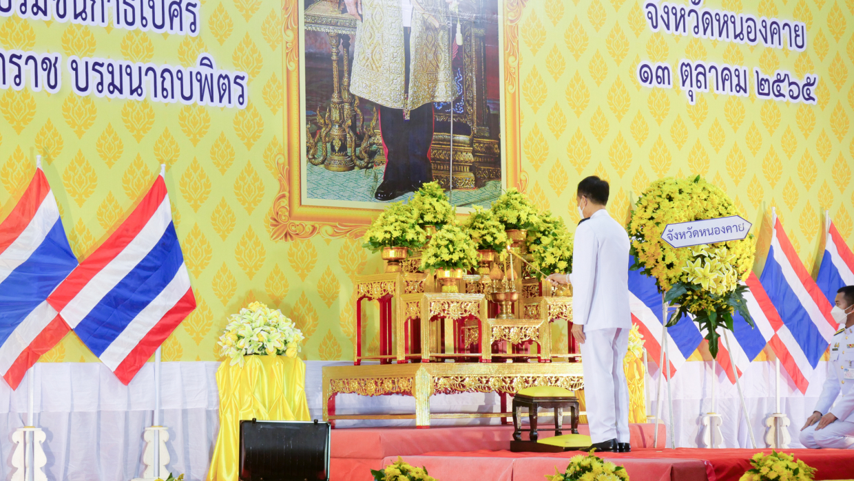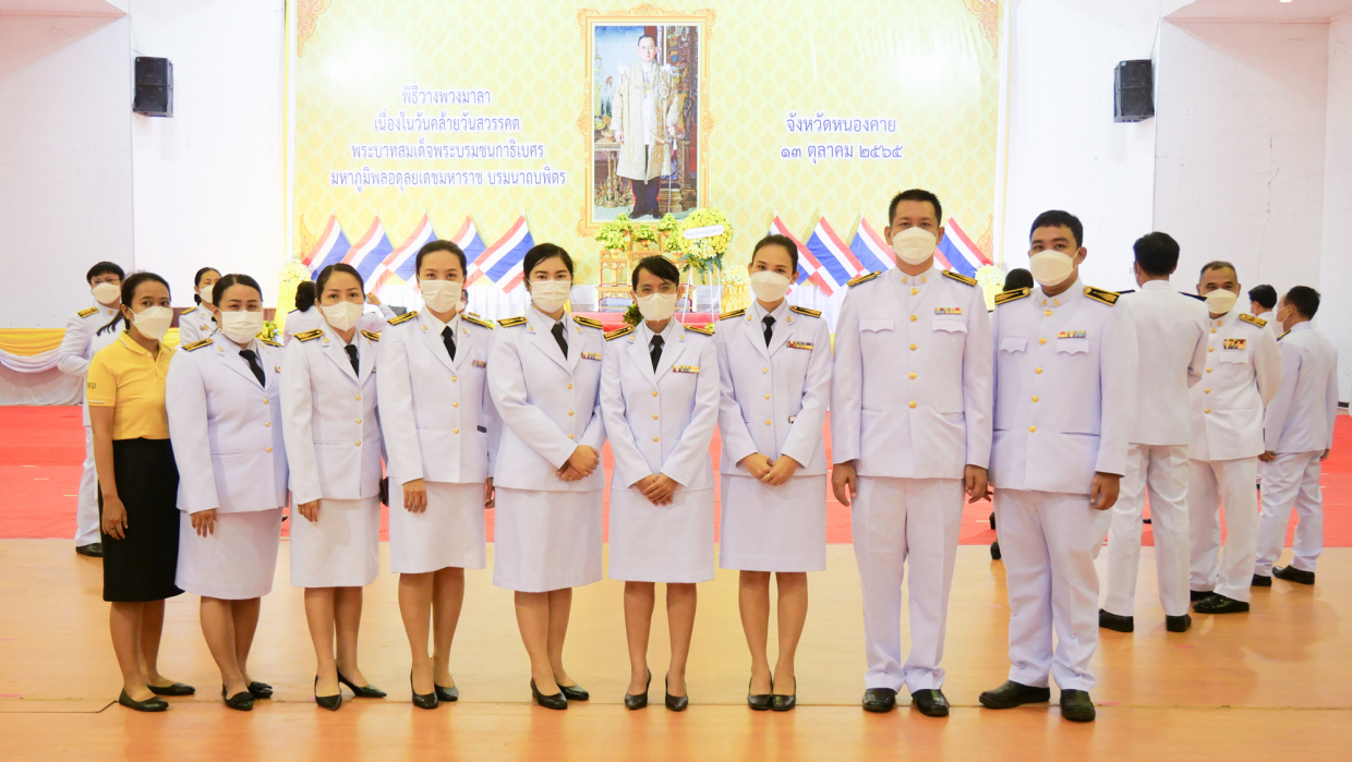 และในเวลา 08.30 น. ณ หอประชุมประจักษ์ศิลปาคม ศาลากลางจังหวัดหนองคาย อำเภอเมืองหนองคาย จังหวัดหนองคาย เข้าร่วมพิธีวางพวงมาลา เนื่องในวันคล้ายวันสวรรคต พระบาทสมเด็จพระบรมชนกาธิเบศร มหาภูมิพลอดุลยเดชมหาราช บรมนาถบพิตร 13 ตุลาคม 2565 โดยมีนายณัฐวัสส์ วิริยานภาภรณ์ รองผู้ว่าราชการจังหวัดหนองคาย รักษาราชการแทนผู้ว่าราชการจังหวัดหนองคาย เป็นประธานในพิธี