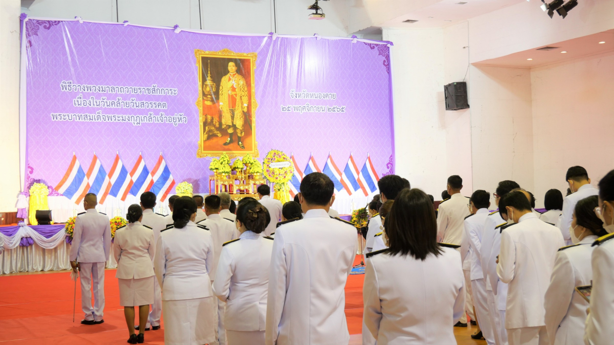 วันที่ 25 พฤศจิกายน 2565 คณะสหวิทยาการ มหาวิทยาลัยขอนแก่น วิทยาเขตหนองคาย นำโดยผู้ช่วยศาสตราจารย์ ดร.ณัฐพล ไตรเพิ่ม รองคณบดีคณะสหวิทยาการ มหาวิทยาลัยขอนแก่น และบุคลากรสายสนับสนุน เข้าร่วมกิจกรรมพิธีวางพวงมาลา เพื่อน้อมรำลึก เนื่องในวันคล้ายวันสวรรณคต “พระบาทสมเด็จพระมงกุฎเกล้าเจ้าอยู่หัว” โดยมีนางสาวสิริมา วัฒโน รองผู้ว่าราชการจังหวัดหนองคาย เป็นประธานเปิดงาน ณ ห้องประชุมประจักษ์ศิลปาคม ศาลากลาง จังหวัดหนองคาย เพื่อน้อมรำลึกในพระมหากรุณาธิคุณสืบไป