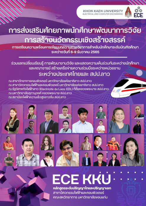 ระหว่างวันที่ 6-9 ธันวาคม 2565 ณ สปป.ลาว หลักสูตรระดับปริญญาโทและปริญญาเอก ภาคนานาชาติ สาขาวิศวกรรมไฟฟ้าและคอมพิวเตอร์ คณะสหวิทยาการ มหาวิทยาลัยขอนแก่น วิทยาเขตหนองคาย ได้จัดกิจกรรมภายใต้โครงการส่งเสริมศักยภาพนักศึกษาพัฒนาการวิจัยและการสร้างนวัตกรรมเชิงสร้างสรรค์ และโครงการเตรียมความพร้อมการเขียนบทความทางวิชาการสำหรับนักศึกษาระดับบัณฑิตศึกษา ระหว่างวันที่ 6-9 ธันวาคม 2565 ซึ่งมีการร่วมแลกเปลี่ยนเรียนรู้ การพัฒนางานวิจัย และแสดงความคิดเห็นร่วมกันระหว่างคณาจารย์และนักศึกษา พร้อมทั้งสร้างเครือข่ายความร่วมมือกับหน่วยงานระหว่างประเทศไทยและ สปป.ลาว โดยคณาจารย์และนักศึกษาได้เข้าร่วมเสวนาและแลกเปลี่ยนมุมมองของภาคการศึกษาและการส่งเสริมงานวิจัย กับหน่วยงานที่ สปป.ลาว ณ