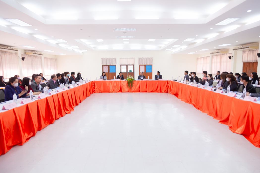 เมื่อวันที่ 24 มกราคม 2566 ณ ห้องประชุม NK1407 ชั้น 4 อาคารสำนักงานบริหาร คณะสหวิทยาการ มหาวิทยาลัยขอนแก่น วิทยาเขตหนองคาย ผู้ช่วยศาสตราจารย์ ดร.เกียรติ แสงอรุณ คณบดีคณะสหวิทยาการ พร้อมคณะผู้บริหารและบุคลากรให้การต้อนรับคณะศึกษาดูงานจากมหาวิทยาลัยศรีนครินทรวิโรฒ โดยมี รองศาสตราจารย์ ดร.สมชาย สันติวัฒนกุล อธิการบดีมหาวิทยาลัยศรีนครินทรวิโรฒ และคณะผู้บริหาร เข้าศึกษาดูงานและร่วมแลกเปลี่ยนเรียนรู้ทางด้านวิชาการ การวิจัย การบริการวิชาการ รวมทั้งการสร้างเครือข่ายร่วมกัน ทางด้านการพัฒนาชุมชนและท้องถิ่น ด้านสังคมศาสตร์ เศรษฐศาสตรฺ บริหารธุรกิจสังคม และได้เข้าเยี่ยมชมพิพิธภัณฑ์สัตว์น้ำจังหวัดหนองคาย
