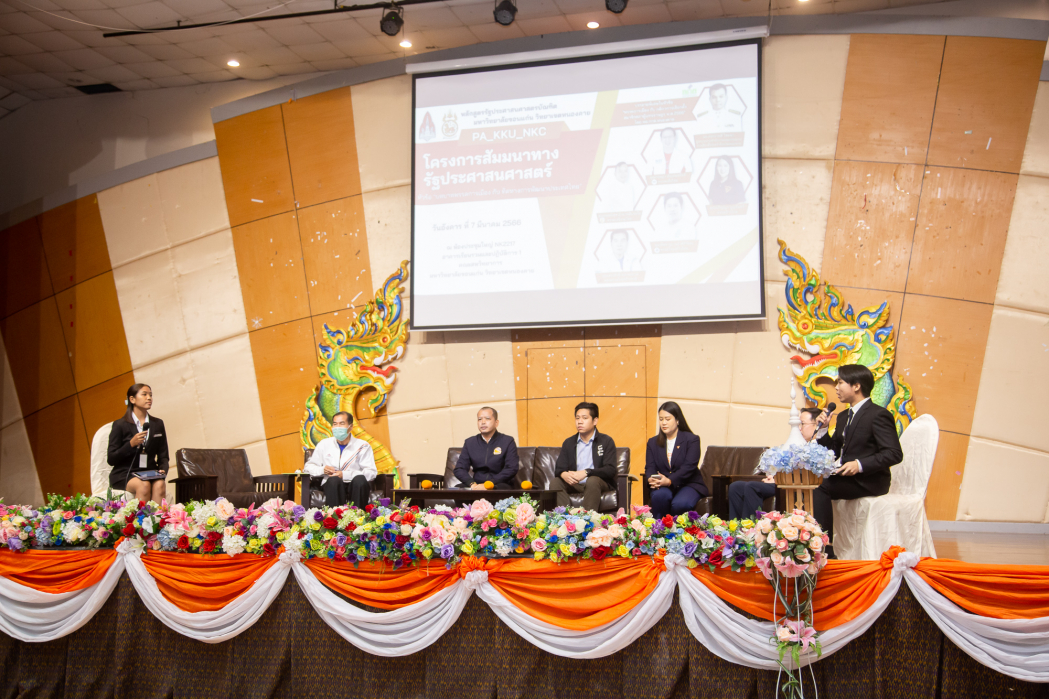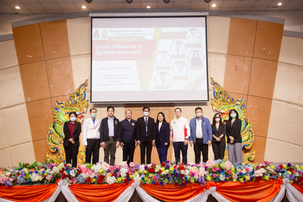 เมื่อวันที่ 7 มีนาคม 2566 ณ ห้องประชุมอเนกประสงค์ NK2217 อาคารเรียนรวมและปฏิบัติการ 1 คณะสหวิทยาการ หลักสูตรรัฐประศาสนศาสตร์ ได้ดำเนินการจัดโครงการสัมมนาทางรัฐประศาสนศาสตร์ หัวข้อ "บทบาทพรรคการเมือง กับ ทิศทางการพัฒนาประเทศไทย" โดยได้รับเกียรติจาก นายราชันย์ ซุ้นหั้ว ผู้ว่าราชการจังหวัดหนองคาย เป็นประธานในพิธี