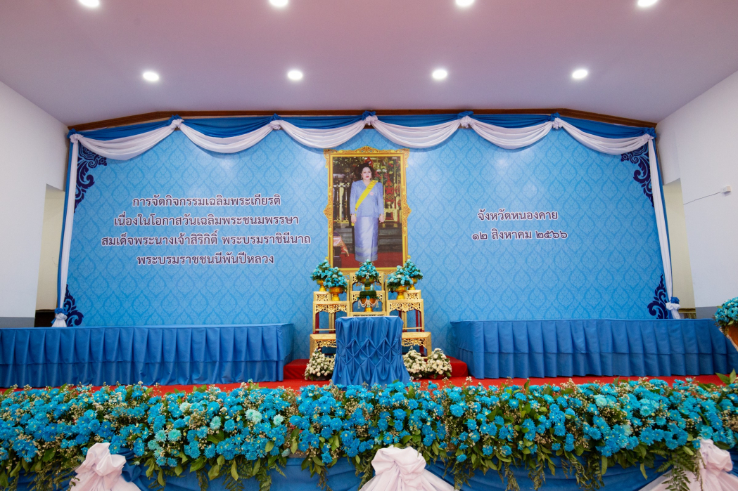 วันที่ 12 สิงหาคม 2566 ณ หอประชุมที่ว่าการอำเภอเมืองหนองคาย (หลังเดิม) อ.เมือง จ.หนองคาย คณะสหวิทยาการ มหาวิทยาลัยขอนแก่น นำโดยผู้ช่วยศาสตราจารย์ ดร.ณัฐพล ไตรเพิ่ม รองคณบดีคณะสหวิทยาการพร้อมด้วยบุคลากร เข้าร่วมพิธีถวายเครื่องราชสักการะและวางพานพุ่ม และจุดเทียนชัยถวายพระพร สมเด็จพระนางเจ้าสิริกิตติ์ พระบรมราชินีนาถ พระบรมราชชนนีพันปีหลวง เนื่องในโอกาสวันเฉลิมพระชนมพรรษา มีนายราชันย์ ซุ้นหั้ว ผู้ว่าราชการจังหวัดหนองคาย เป็นประธานในพิธีถวายเครื่องราชสักการะและวางพานพุ่ม และจุดเทียนชัยถวายพระพร สมเด็จพระนางเจ้าสิริกิตติ์ พระบรมราชินีนาถ พระบรมราชชนนีพันปีหลวง พิธีเริ่มจากหัวหน้าส่วนราชการ หน่วยงานรัฐวิสาหกิจ องค์กรปกครองส่วนท้องถิ่น ทั้งภาครัฐภาคเอกชน ถวายเครื่องราชสักการะพานพุ่มทอง-พุ่มเงิน ตามลำดับ จากนั้นผู้ว่าราชการจังหวัดหนองคาย ประธานในพิธีฯ ได้วางพานพุ่มทอง-พุ่มเงิน เปิดกรวยกระทงดอกไม้ธูปเทียนแพ ถวายความความเคารพเบื้องหน้าพระบรมฉายาลักษณ์ สมเด็จพระนางเจ้าสิริกิตติ์ พระบรมราชินีนาถ พระบรมราชชนนีพันปีหลวง แล้วจุดเทียนมหามงคล กล่าวกราบบังคมทูลถวายพระพรชัยมงคล และกล่าวนำผู้ร่วมพิธีกล่าวถวายพระพรชัยมงคล ร้องเพลงสรรเสริญพระบารมี ต่อเทียนให้กับผู้เข้าร่วมพิธีฯ จากนั้นได้ร่วมกันร้องเพลงสดุดีพระแม่ไทย ผู้ว่าราชการจังหวัดประธานในพิธีกล่าวนำ “ทรงพระเจริญ”
