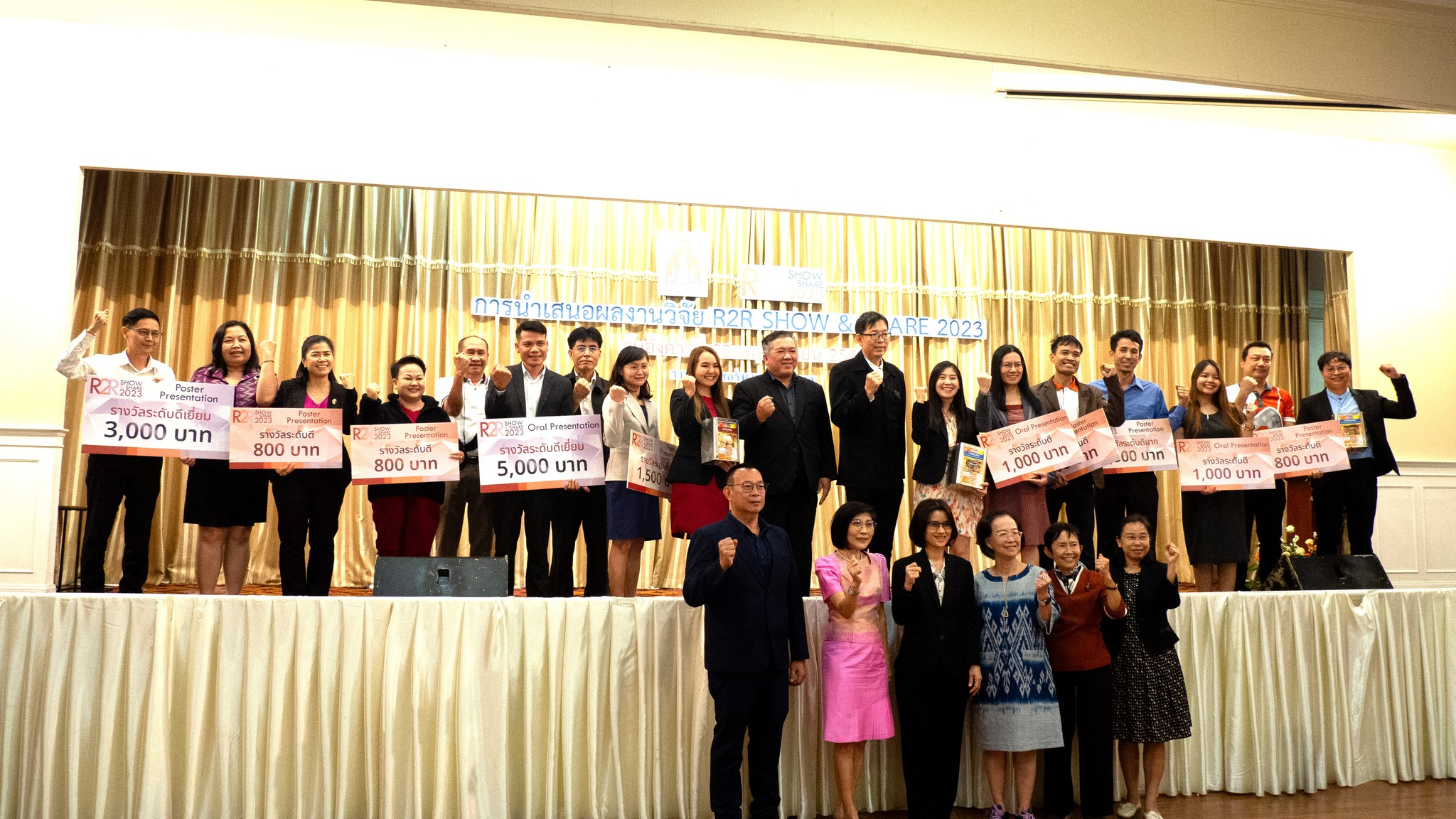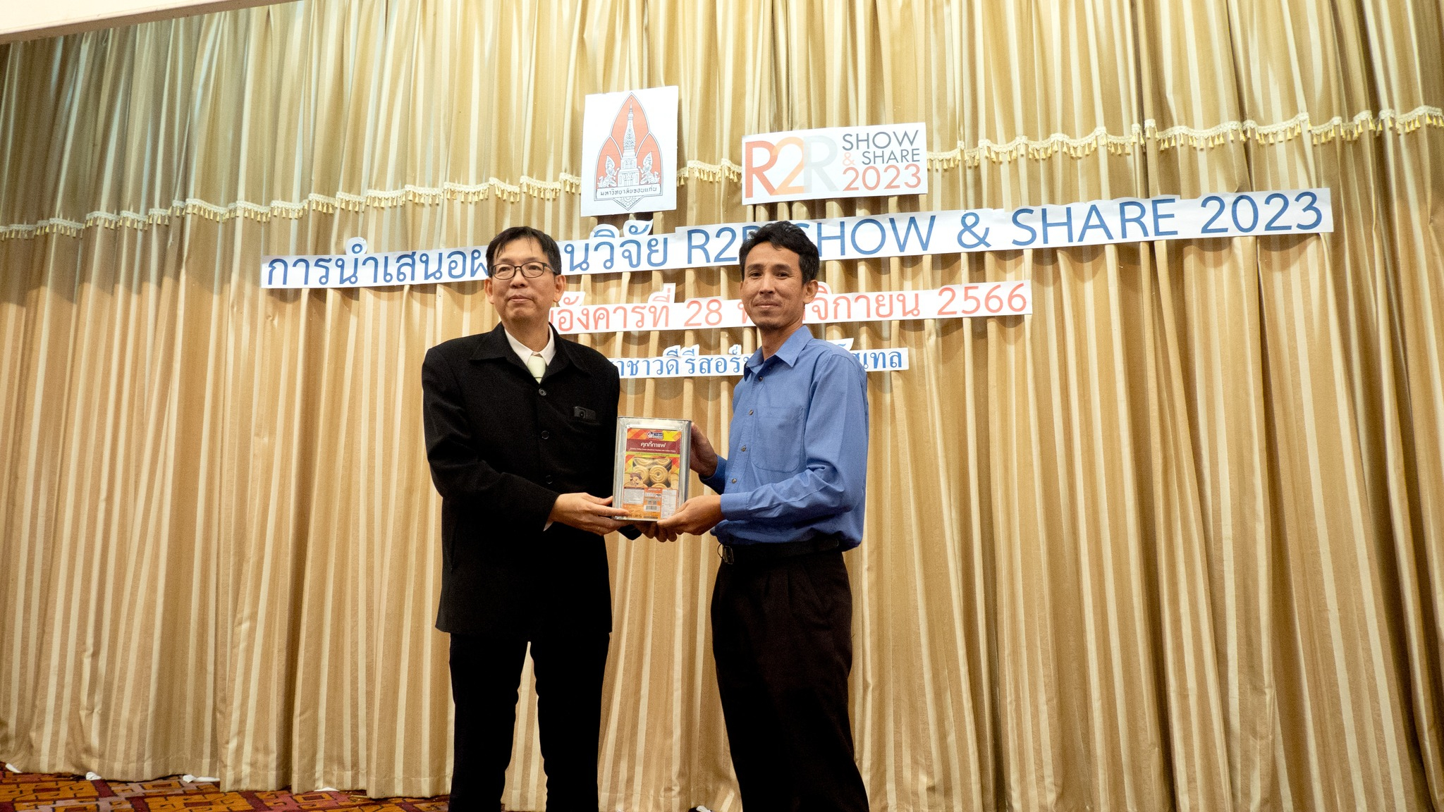 วันที่ 28 พฤศจิกายน พ.ศ. 2566 ณ ห้องประชุมแกรนด์พาวิลเลี่ยน โรงแรมราชาวดี รีสอร์ท แอนด์ โฮเทล ฝ่ายวิจัยและบัณฑิตศึกษา โดยกองบริหารงานวิจัย ได้จัดกิจกรรมการนำเสนอผลงานวิจัย R2R Show & Share 2023 โดยมี รองศาสตราจารย์ปณิธาน พีรพัฒนา ประธานคณะกรรมการผู้ทรงคุณวุฒิโครงการวิจัยเพื่อพัฒนางานประจำ (Routine to research: R2R) กล่าวรายงานชี้แจงวัตถุประสงค์ในการดำเนินงาน และได้รับเกียรติจาก ศาสตราจารย์มนต์ชัย ดวงจินดา รองอธิการบดีฝ่ายวิจัยและบัณฑิตศึกษา เป็นประธานในพิธีและกล่าวเปิดงาน และได้รับเกียรติจากคณะกรรมการ ผู้ทรงคุณวุฒิฯ ผู้บริหาร และหัวหน้าส่วนงานเข้าร่วมพิธีเปิดในครั้งนี้ โดยวัตถุประสงค์ในการจัดงานครั้งนี้ เพื่อเป็นเวทีแลกเปลี่ยนเรียนรู้และนำเสนอผลงานวิจัย R2R ระหว่างนักวิจัย และหน่วยงานภายในมหาวิทยาลัยขอนแก่น ได้แบ่งการนำเสนอเป็น 2 รูปแบบ คือ การนำเสนอในรูปแบบ Oral Presentation จำนวน 27 ผลงาน และ การนำเสนอแบบ Poster Presentation จำนวน 50 โครงการ