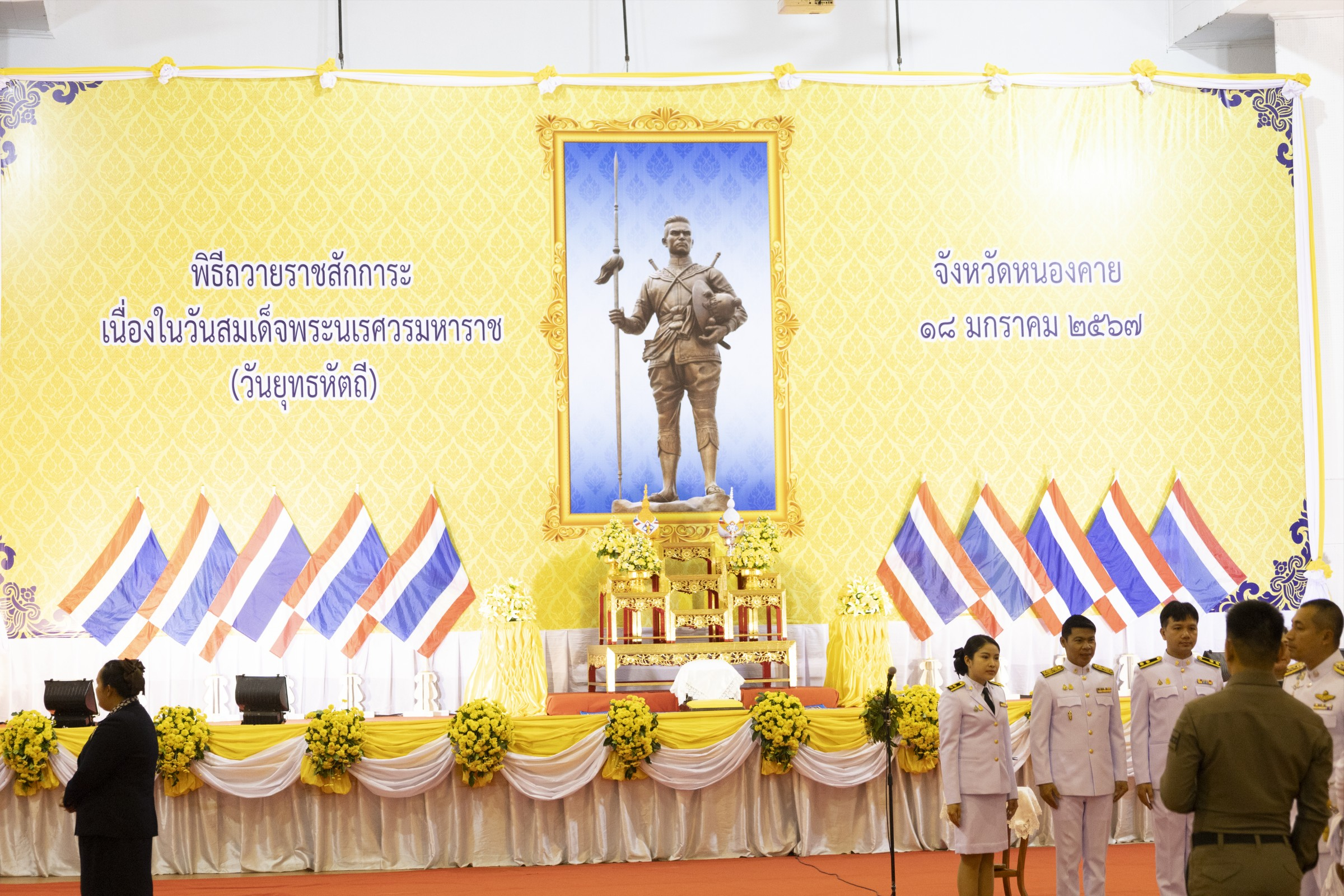 การจัดงานพระราชพิธีครั้งนี้ ได้รับเกียรติจาก นายราชันย์ ซุ้นหั้ว ผู้ว่าราชการจังหวัดหนองคาย เป็นประธานในพิธี พร้อมทั้งหัวหน้าส่วนราชการต่าง ๆ เข้าร่วม ณ ห้องประชุมประจักษ์ศิลปาคม ศาลากลางจังหวัดหนองคาย เพื่อเป็นการระลึกถึงพระมหากรุณาธิคุณ ที่พระองค์ทรงทำคุณประโยชน์ต่อชาติบ้านเมือง ปกป้องผืนแผ่นดินไทย ทำให้ชาวไทยต่างน้อมใจกันร่วมถวายสักการะและความจงรักภักดีสำนึกในพระมหากรุณาธิคุณ ตลอดจนทุกวันนี้