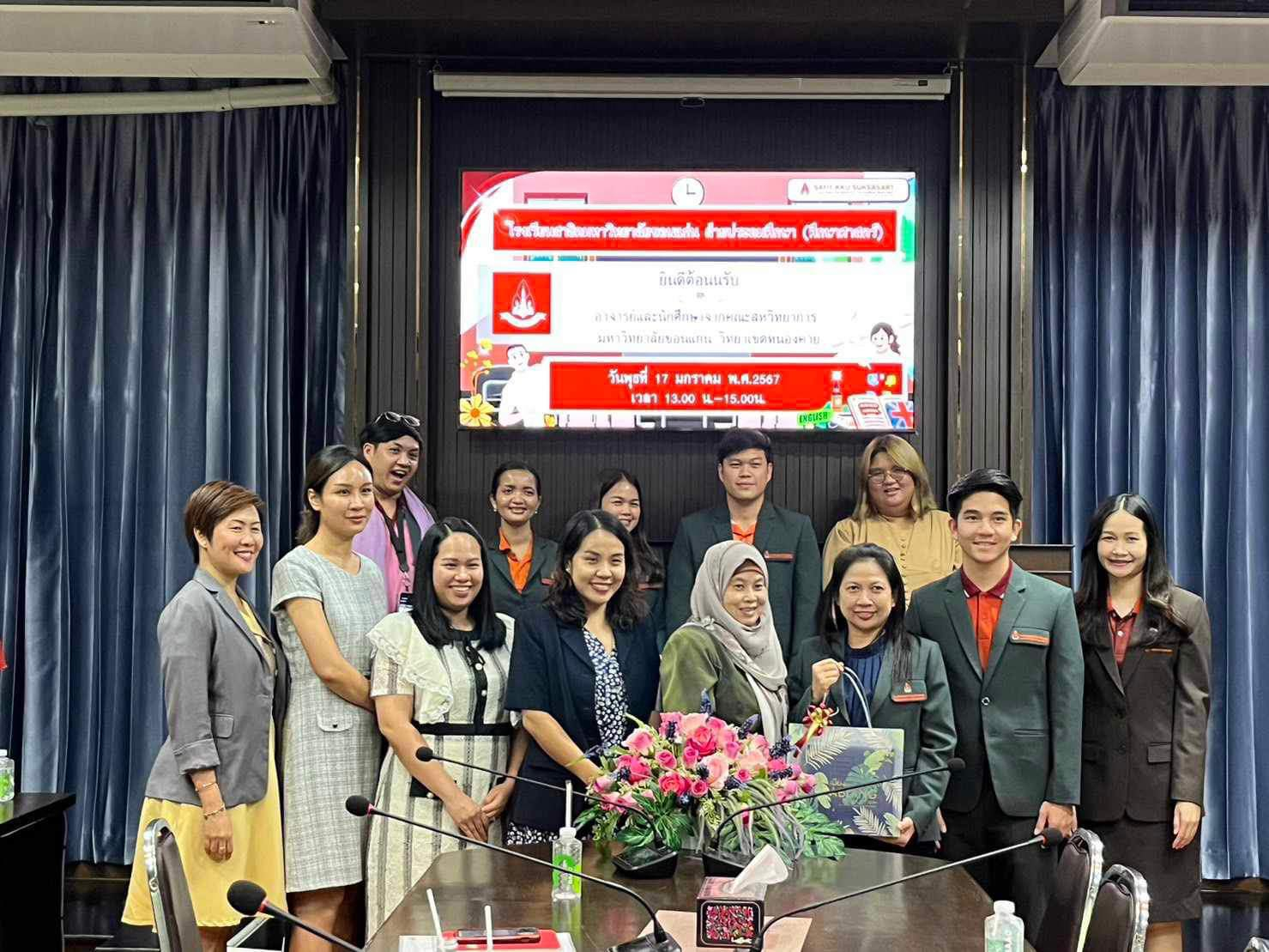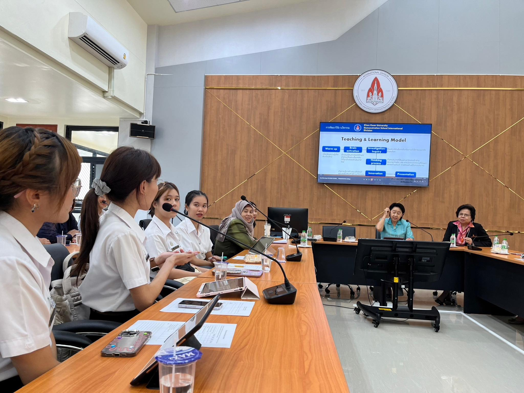 นอกจากนี้ นักศึกษายังได้เข้าศึกษาดูงาน ณ โรงเรียนสาธิตมหาวิทยาลัยขอนแก่น ฝ่ายประถมศึกษา (ศึกษาศาสตร์) เพื่อร่วมแลกเปลี่ยนเรียนรู้ในประเด็น “เทคนิคและแนวทางการจัดกิจกรรมการเรียนรู้วิชาภาษาอังกฤษสำหรับนักเรียนระดับประถมศึกษา” และศึกษาการจัดการเรียนรู้ที่มุ่งสร้างผู้เรียนให้เป็นนวัตกรที่มีความคิดสร้างสรรค์ (Creative Innovator) และการจัดการเรียนรู้แบบยูนิต (Unit) ที่จะช่วยสนับสนุนให้ผู้เรียนเรียนรู้ตามความสามารถและความสนใจของตนได้ โดยได้รับการต้อนรับจาก อาจารย์ปิลันธนา ศุภดล รักษาการแทนรองผู้อำนวยการและเหล่าคณาจารย์ในโรงเรียนฯ
