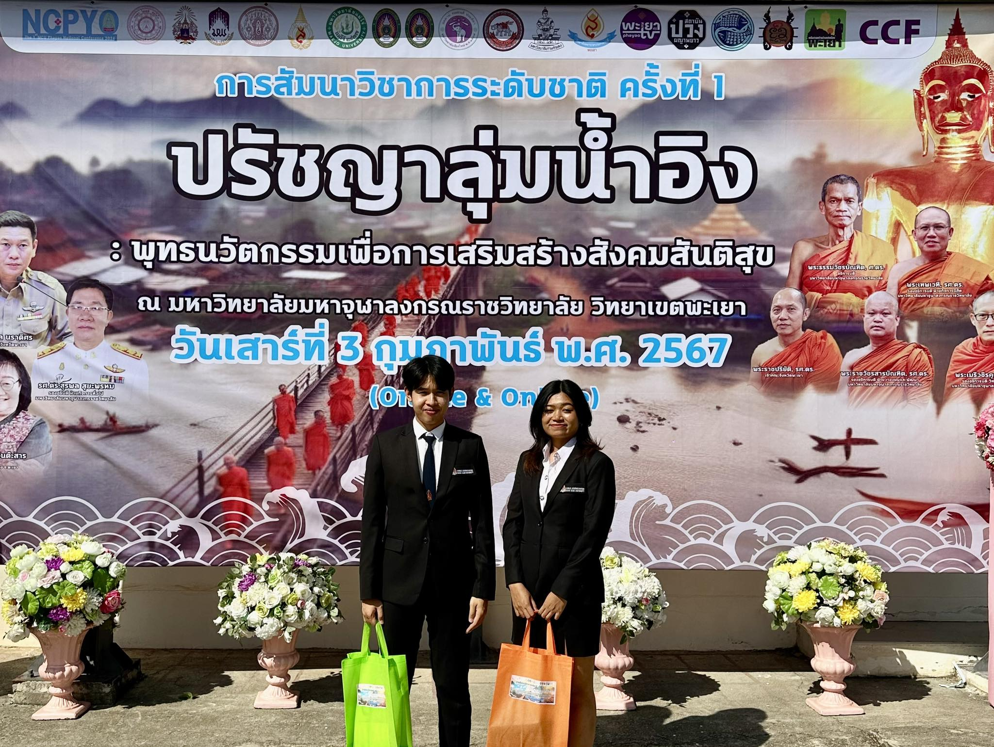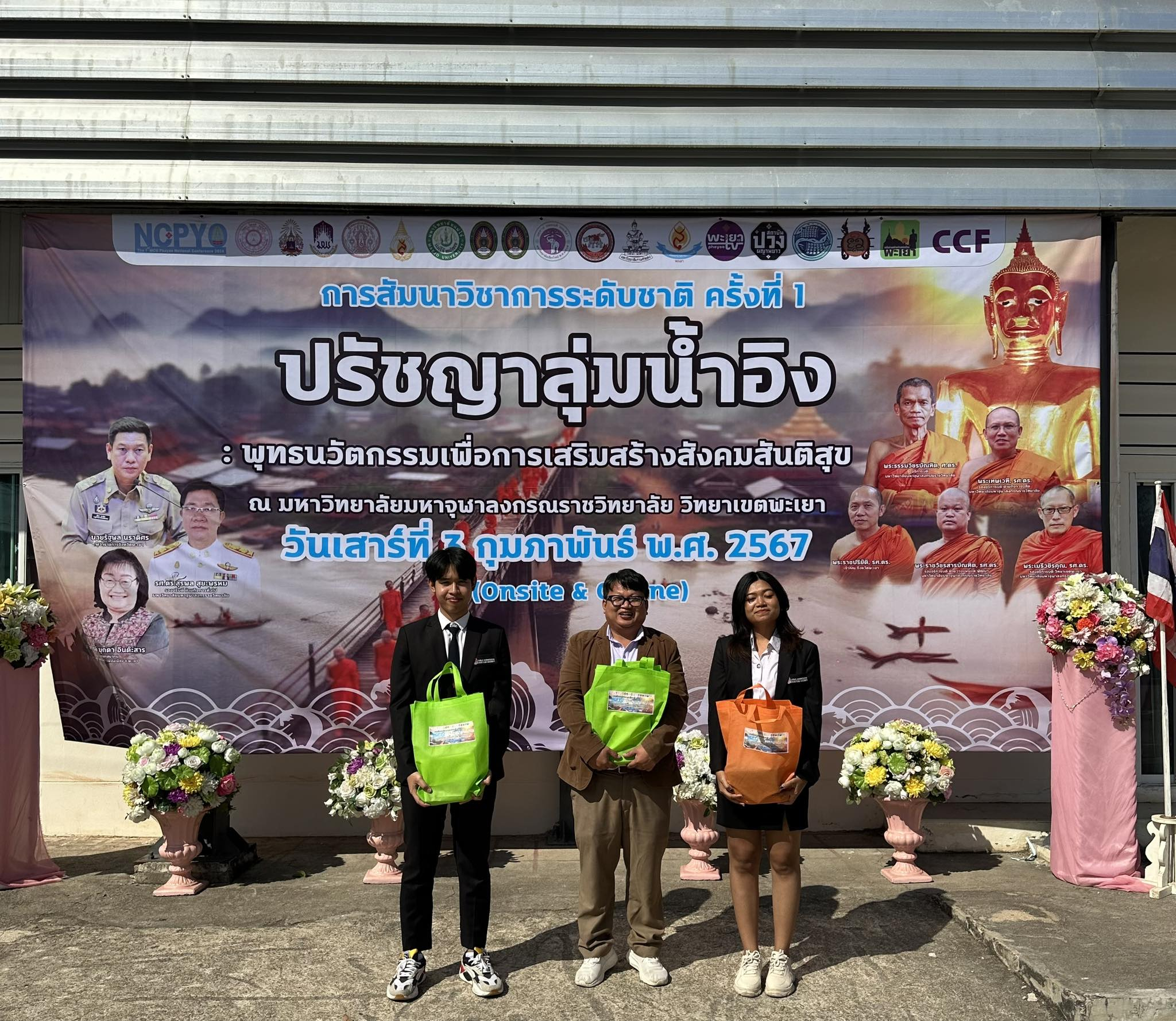 เมื่อวันเสาร์ที่ 3 กุมภาพันธ์ พ.ศ. 2567 เวลา 08.00 น. – 16.00 น. มหาวิทยาลัยมหาจุฬาลงกรณราชวิทยาลัย วิทยาเขตพะเยา ร่วมกับสถาบันวิจัยพุทธศาสตร์และสถาบันเครือข่ายฯจำนวน 18 หน่วยงาน ได้จัดงานสัมมนาวิชาการระดับชาติ ครั้งที่ 1 เรื่อง “ปรัชญาลุ่มน้ําอิง:พุทธนวัตกรรมเพื่อเสริมสร้างสังคมสันติสุข” Onsite และ Online เพื่อเป็นเวทีในการนําเสนอและเผยแพร่บทบาทผลงานวิจัย ในงานครั้งนี้