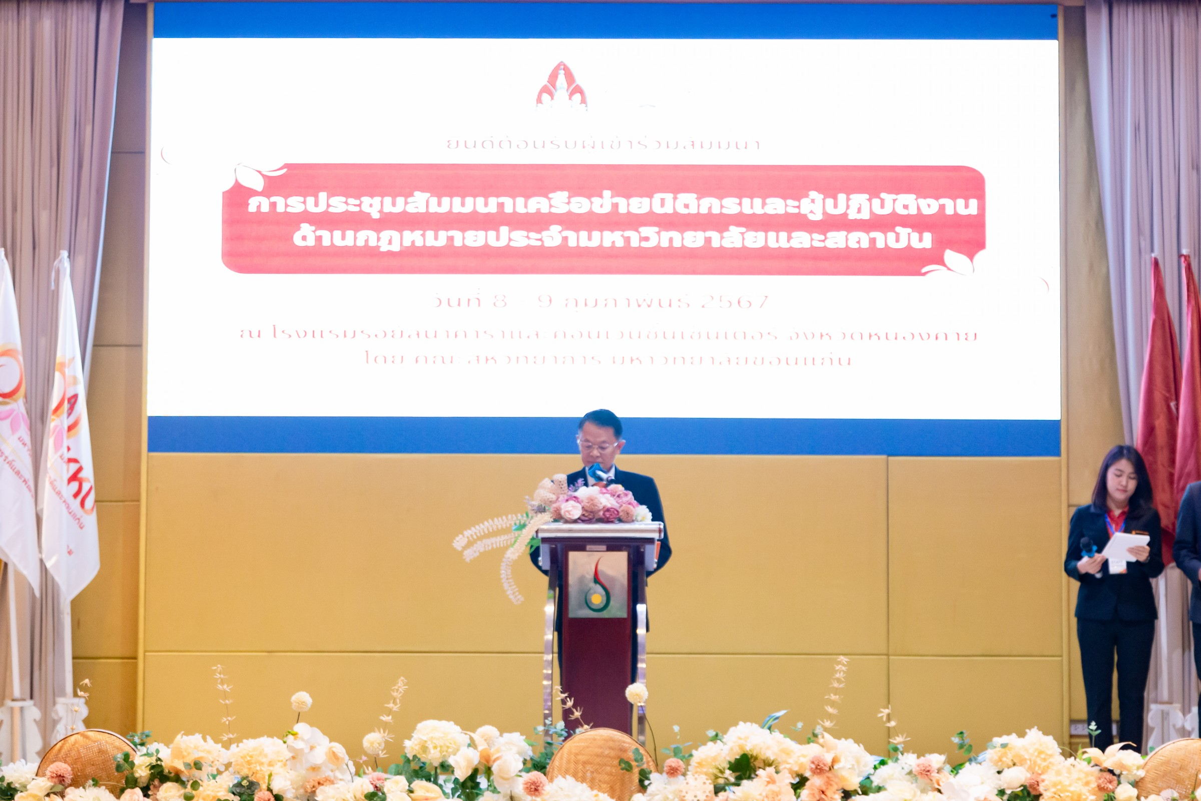 “มหาวิทยาลัยขอนแก่น วิทยาเขตหนองคายร่วมกับกลุ่มนิติกรประจำมหาวิทยาลัยและสถาบัน จัดโครงการประชุมสัมมนาเครือข่ายนิติกรและผู้ปฏิบัติงานด้านกฎหมายประจำมหาวิทยาลัยและสถาบัน เรื่อง “กฎหมายปกครองที่เกี่ยวกับการปฏิบัติหน้าที่ของเจ้าหน้าที่รัฐในสังกัดสถาบันอุดมศึกษาและแนวคำพิพากษาศาลปกครอง” ขึ้นในครั้งนี้ เพื่อให้ผู้ปฏิบัติงานด้านกฎหมายและนิติกรในสังกัดสถาบันอุดมศึกษา ได้รับทราบ และเข้าใจเกี่ยวกับขั้นตอนต่าง ๆ เกี่ยวกับการปฏิบัติงานตามภารกิจด้านกฎหมายของแต่ละสถาบันอุดมศึกษา เพื่อให้ปฏิบัติงานได้อย่างถูกต้องตามกฎหมาย กฎ ระเบียบ และข้อบังคับที่เกี่ยวข้อง และเป็นโอกาสให้นิติกรได้พบปะเพื่อแลกเปลี่ยนเรียนรู้และแลกเปลี่ยนประสบการณ์ในการปฏิบัติงานด้านกฎหมายสร้างองค์ความรู้ รวมถึงประสบการณ์ใหม่ๆ ที่เกี่ยวข้องกับงานด้านกฎหมาย ป้องกันและลดความเสี่ยงที่เกิดจากการปฏิบัติงานด้านกฎหมายและถ่ายทอดประสบการณ์ระหว่างวิทยากรกับผู้เข้าร่วมสัมมนา โดยมุ่งเน้นข้อกฎหมายที่ต้องใช้ในการปฏิบัติงานและปัญหาอุปสรรคในการปฏิบัติงาน รวมทั้งคำพิพากษาของศาลปกครองที่เกี่ยวข้อง”
