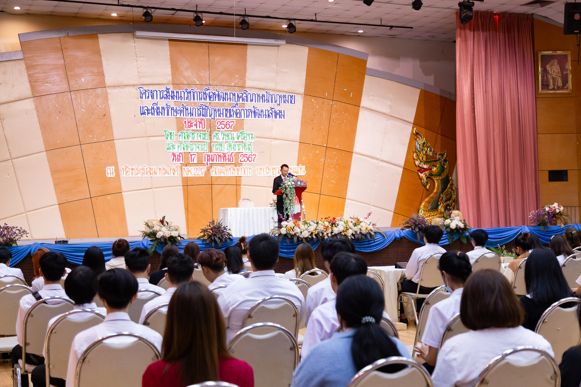 เมื่อวันที่ 17 กุมภาพันธ์ 2566 ณ ห้องประชุม NK2217 อาคารเรียนรวมและปฏิบัติการ 1 มหาวิทยาลัยขอนแก่น วิทยาเขตหนองคาย ผู้ช่วยศาสตราจารย์ ดร.เกียรติ แสงอรุณ คณบดีคณะสหวิทยาการ เป็นประธานในพิธี เปิดโครงการสัมมนาวิชาการเพื่อพัฒนาบุคลิกภาพนักกฎหมายและเพิ่มทักษะด้านกฎหมายเพื่อพัฒนาสังคม