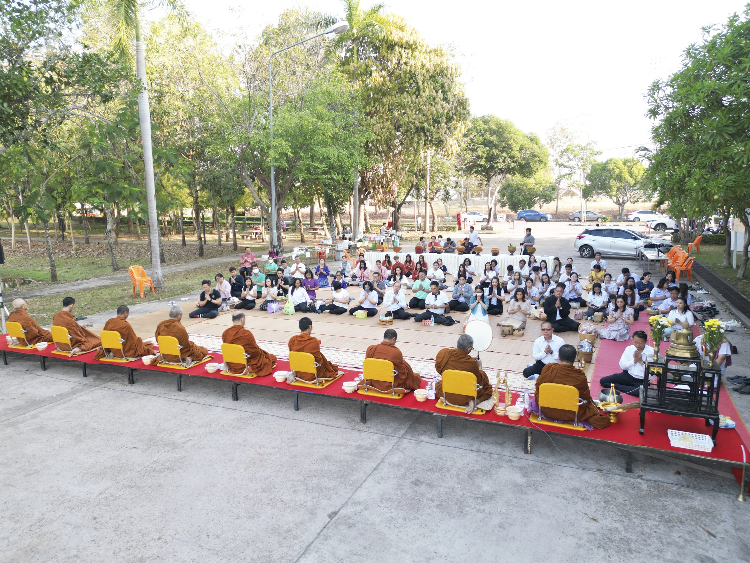 วันที่ 21 กุมภาพันธ์ 2567 คณะสหวิทยาการ มหาวิทยาลัยขอนแก่น ได้จัดโครงการสถาปนาวิทยาเขตหนองคาย มหาวิทยาลัยขอนแก่น ประจำปี 2567 ครบรอบ 26 ปี นำโดยผู้ช่วยศาสตราจารย์ ดร.เกียรติ แสงอรุณ คณบดีคณะสหวิทยาการ คณะผู้บริหาร คณาจารย์ บุคลากรและนักศึกษา ได้ร่วมกันทำบุญตักบาตรและถวายภัตตาหารพระสงฆ์ จำนวน 9 รูป และในเวลาต่อมาได้ทำพิธีสักการะและรำบรวงสรวงสิ่งศักด์สิทธิ์ภายในคณะสหวิทยาการ มหาวิทยาลัยขอนแก่น วิทยาเขตหนองคาย