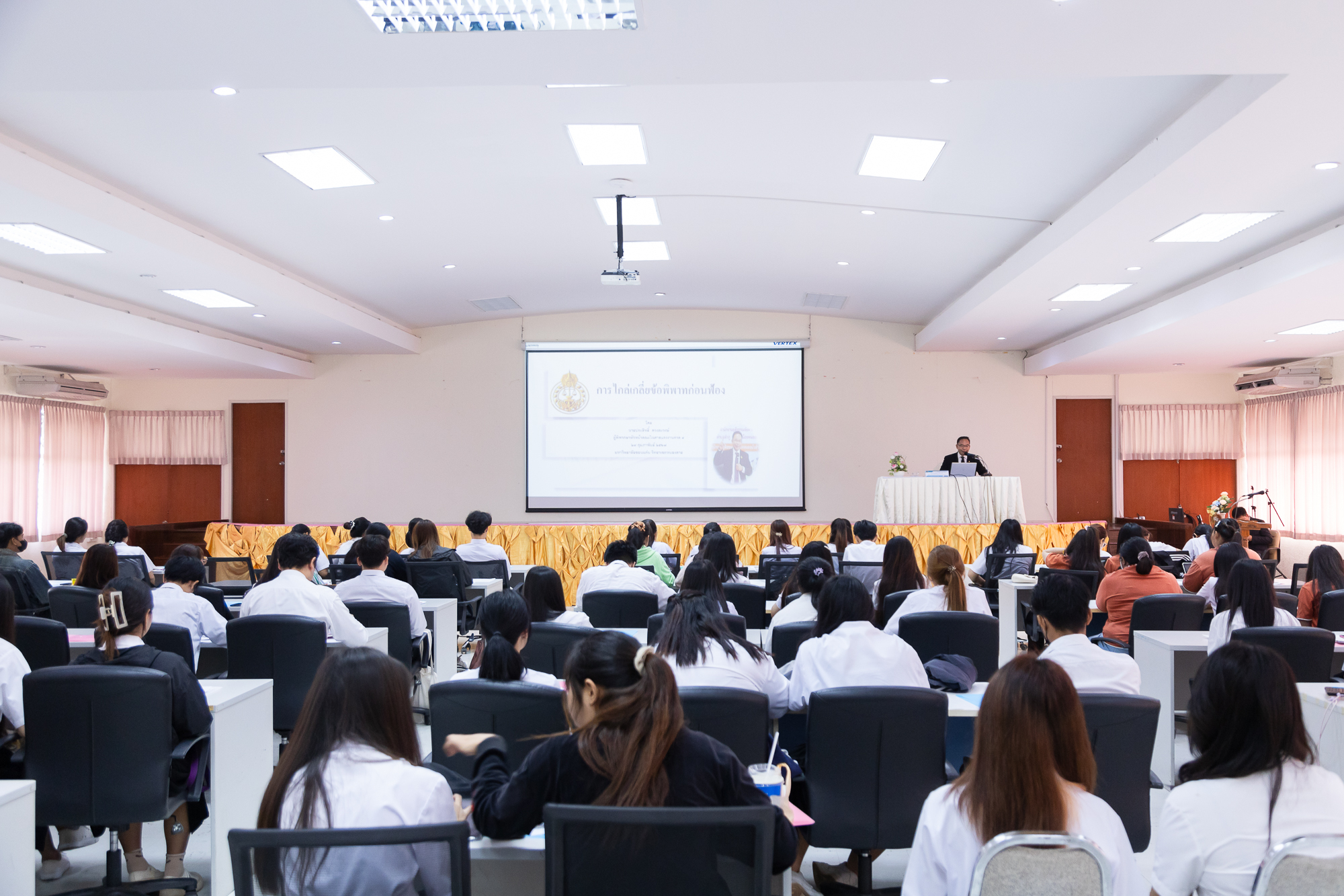 โครงการดังกล่าว มีวัตถุประสงค์เพื่อรณรงค์เผยแพร่ความรู้กฎหมายหมายเกี่ยวข้องกับการไกล่เกลี่ยข้อพิพาท การไกล่เกลี่ยก่อนฟ้องและหลังฟ้องคดี รวมถึงการไกล่เกลี่ยออนไลน์แก่นักศึกษาและบุคลากรในสถานศึกษา ทั้งนี้มีอาจารย์และนักศึกษาหลักสูตรสาขานิติศาสตร์ เข้าร่วมโครงการจำนวนกว่า 200 คน