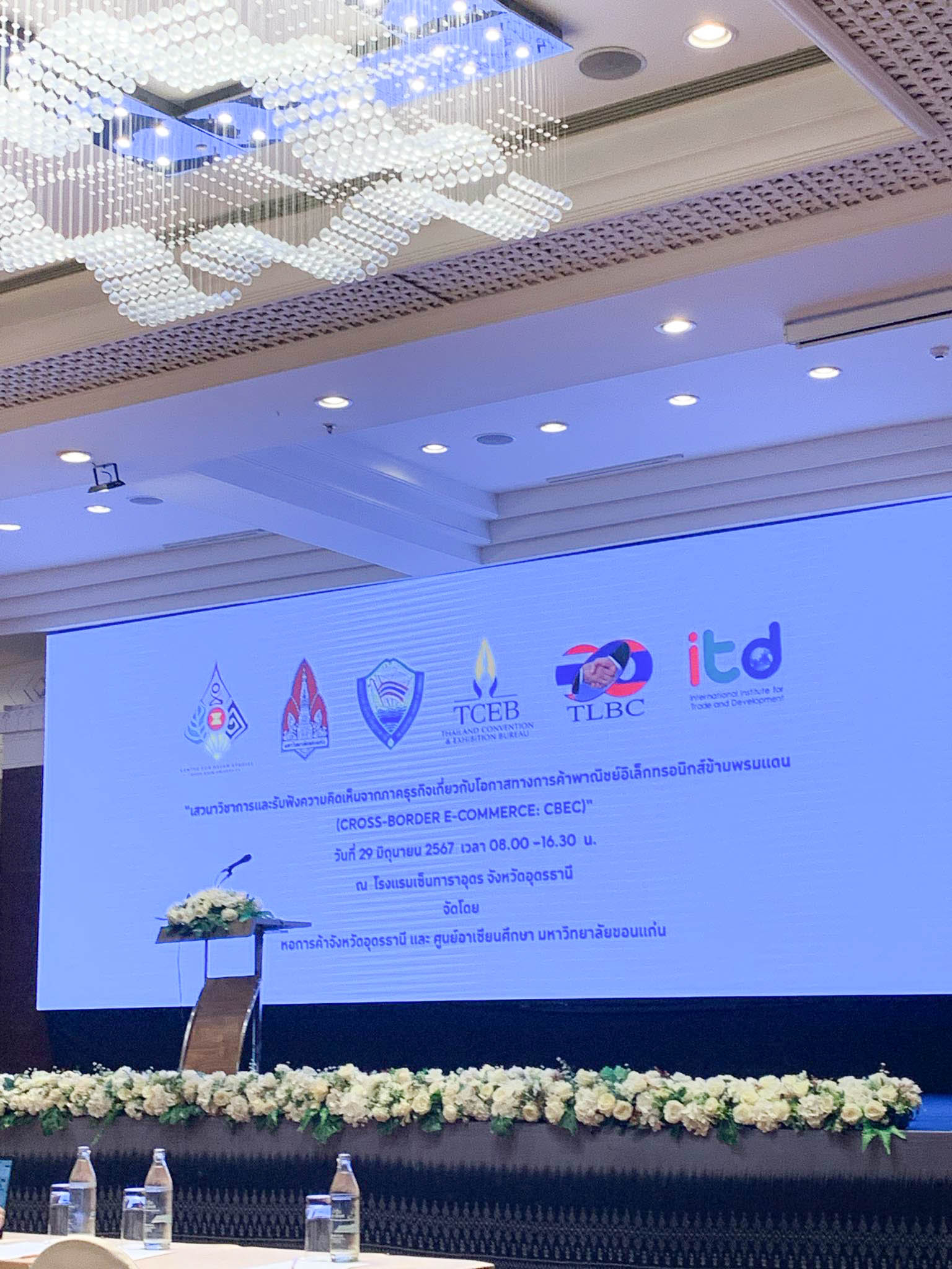 วันที่ 29 มิถุนายน 2567 รองศาสตราจารย์ ดร.ธเนศ วัฒนกูล หัวหน้าสาขาสังคมศาสตร์ และประธานหลักสูตรเศรษฐศาสตรมหาบัณฑิต สาขาเศรษฐศาสตร์ระหว่างประเทศและการท่องเที่ยว คณะสหวิทยาการ มหาวิทยาลัยขอนแก่น นำนักศึกษาสาขาเศรษฐศาสตร์ระหว่างประเทศ นวัตกรรม และความยั่งยืน ชั้นปีที่ 2 และ 3 เข้าร่วมการเสวนาวิชาการและรับฟังความคิดเห็นจากภาคธุรกิจเกี่ยวกับโอกาสทางการค้า พาณิชย์อิเล็กทรอนิกส์ ข้ามพรมแดน (CROSS-BORDER E-COMMERCE: CBEC) ณ โรงแรมแรมเซ็นทารา จังหวัดอุดรธานี ซึ่งได้รับเกียรติจาก วิทยากร ที่มากด้วยความรู้ความสามารถ ร่วมกันถ่ายทอดความรู้ในการเสวนาครั้งนี้ อีกยังเป็นการเรียนรู้นอกห้องเรียนและเปิดประสบการณ์ใหม่ๆ เกี่ยวกับโอกาสทางการค้า ข้ามพรมแดน และมีผู้ที่สนใจเข้าร่วมรับฟังเสวนานี้เป็นจำนวนมาก
