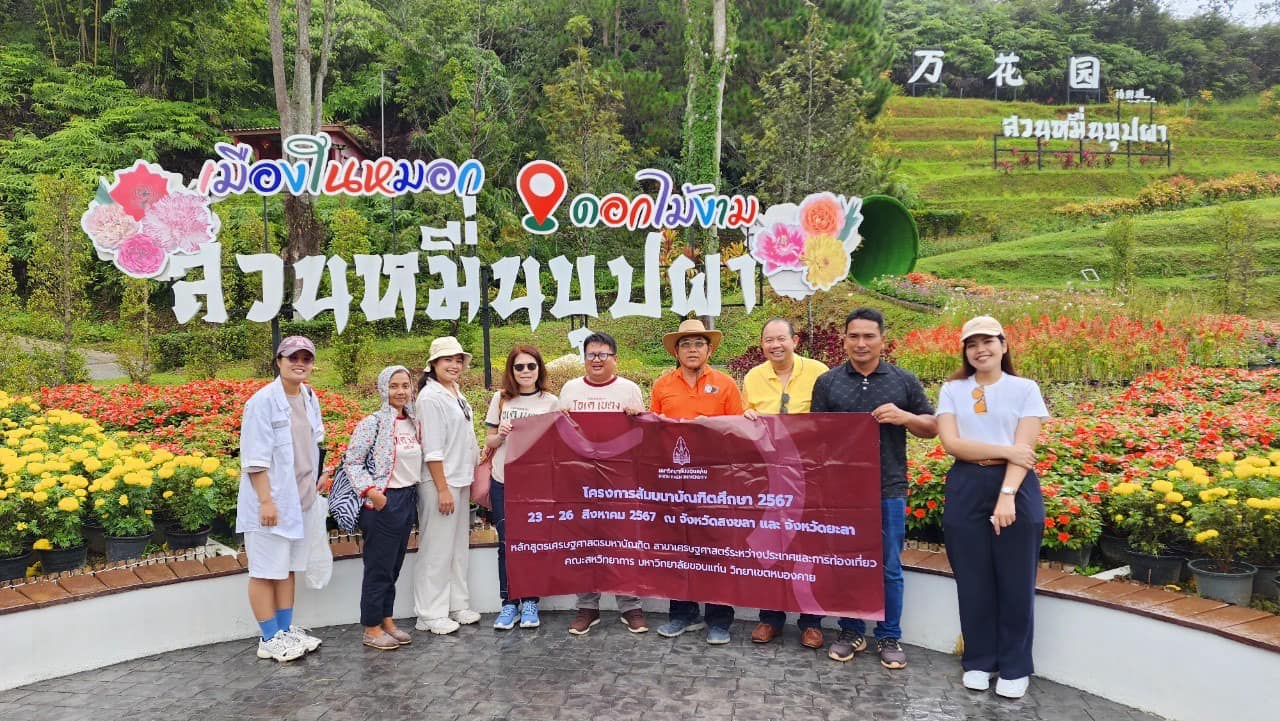 วันที่ 24-26 สิงหาคม 2567 คณะสหวิทยาการ มหาวิทยาลัยขอนแก่น หลักสูตรเศรษฐศาสตรมหาบัณฑิต สาขาเศรษฐศาสตร์ระหว่างประเทศและการท่องเที่ยวได้จัดโครงการสัมมนาบัณฑิตศึกษา 2567 ขึ้น ณ จังหวัดสงขลา และจังหวัดยะลาโดยจัดโครงการในลักษณะศึกษาดูงาน ณ สถานประกอบการจริง ได้แก่ท่าเรือเทศบาลนครสงขลา จังหวัดสงขลา การเรียนรู้การจัดการท่องเที่ยวคาร์บอนสุทธิและสวนเมืองหนาวที่เดียวในภาคใต้ ณ โครงการดอกไม้เมืองหนาวสวนหมื่นบุปผาในพระราชดำริ การจัดการธุรกิจผลไม้เศรษฐกิจ การจัดการธุรกิจปลาน้ำไหลภายใต้ความเสี่่ยงโดยเป็นต้นแบบของแบบจำลองธุรกิจเกษตร รวมไปถึงการเยี่ยมชมด่านศุลกากรเบตง จังหวัดยะลา ในโครงการนี้มีคณาจารย์ประจำหลักสูตรและนักศึกษาเข้าร่วมโครงการจำนวน 10 ท่าน นับว่าเป็นกิจกรรมที่สามารถนำมาประยุกต์ใช้ในส่วนของหลักสูตรเศรษฐศาสตร์ระหว่างประเทศและการท่องเที่ยว ที่ทำการเรียนการสอน ของคณะสหวิทยาการ มหาวิทยาลัยขอนแก่น ได้เป็นอย่างดี