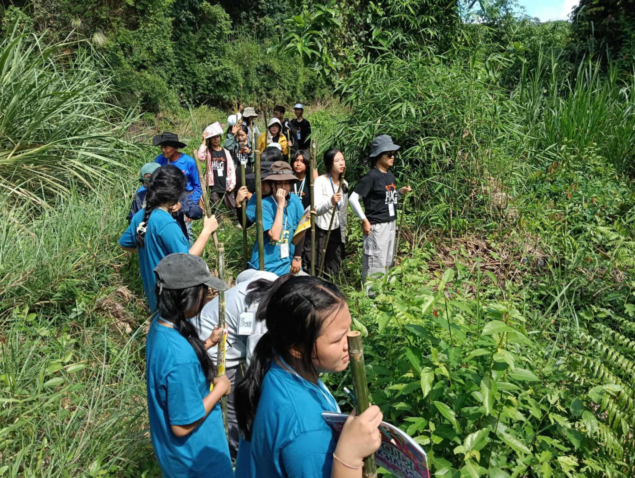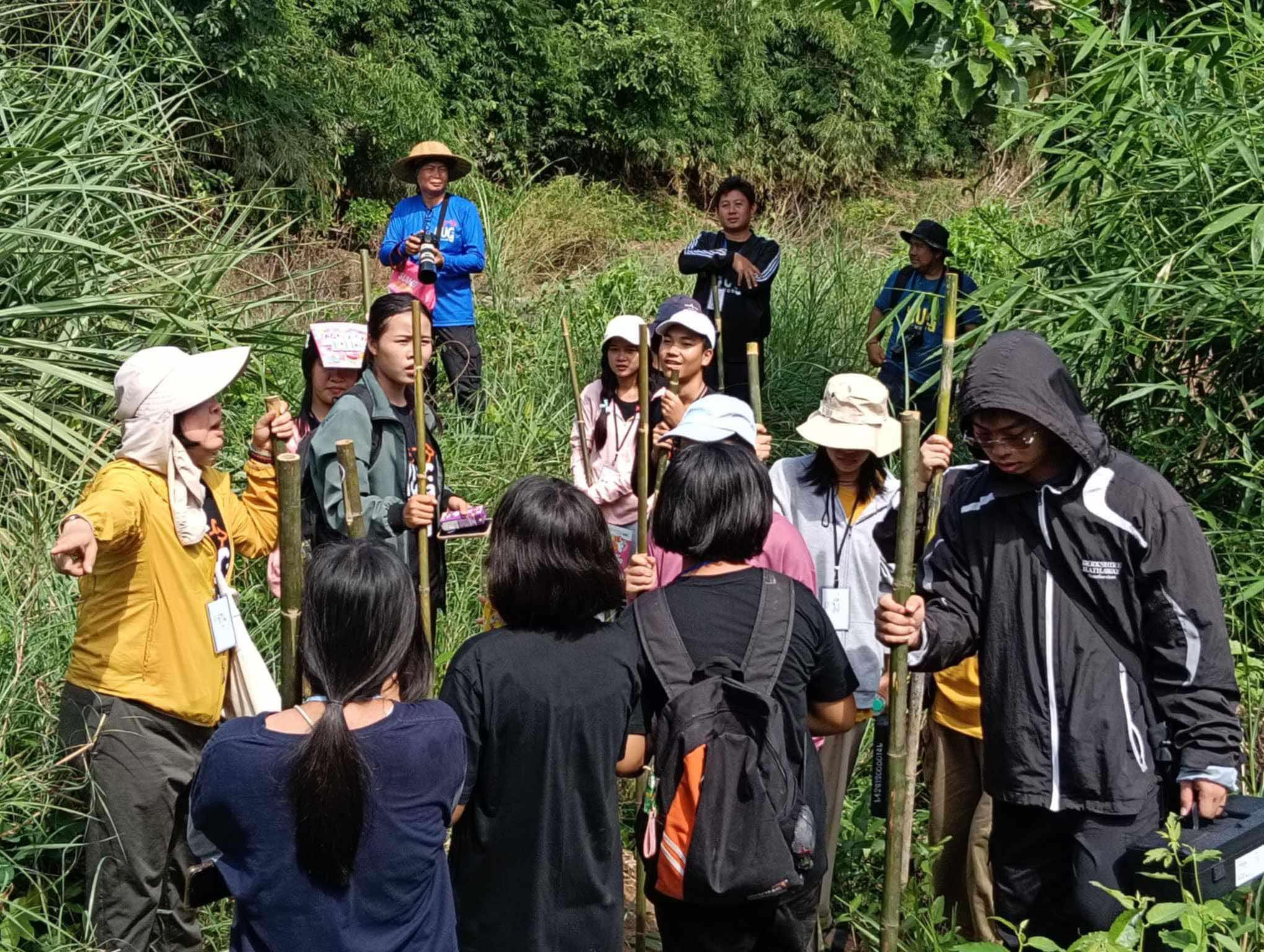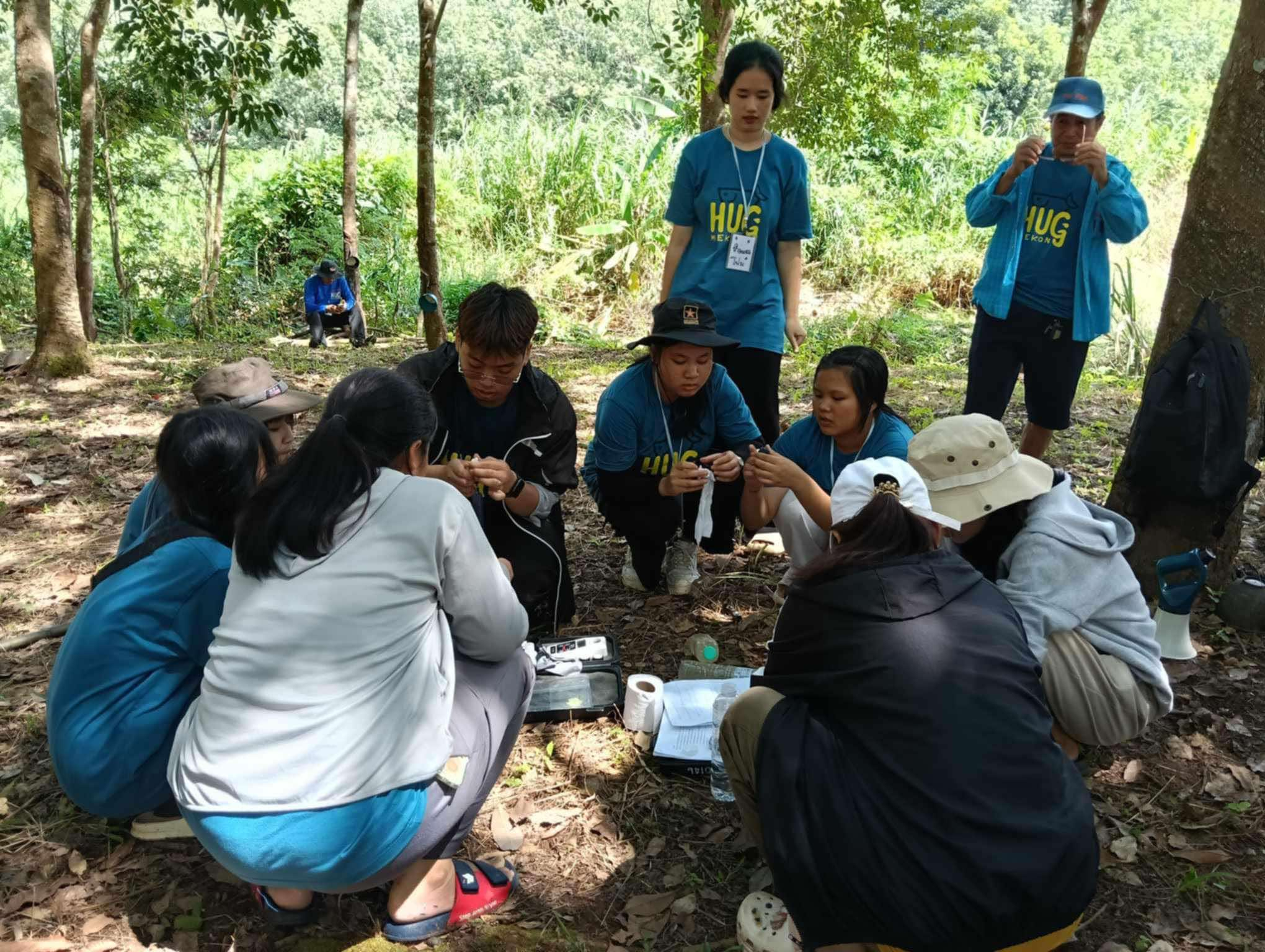 วันที่ 20 ตุลาคม 2567 หลักสูตรวิทยาศาสตร์สิ่งแวดล้อมและทรัพยากรธรรมชาติ คณะสหวิทยาการ มข. นำโดย อาจารย์ ดร.อาภากร สกุลสถาพร อาจารย์ประจำหลักสูตร พร้อมด้วยนักศึกษา ชั้นปีที่ 4 จำนวน 3 คนได้แก่ นายฉัตรดนัย ยุ่นชัย (พี่แฮ่ม) นางสาวกุลณัฐ ถามุลแสน (พี่เจน) และนางสาวมาติกา ฦาชา (พี่มี่) ได้สนับสนุนด้านวิชาการในการสำรวจระบบนิเวศทางน้ำในเส้นทางศึกษาธรรมชาติลำน้ำฮวย ตำบลบ้านม่วง อำเภอสังคม จังหวัดหนองคาย ร่วมกับสมาคมเครือข่ายสภาองค์กรชุมชนลุ่มน้ำโขง 7 จังหวัดภาคอีสาน และคุณครูและนักเรียนจากโรงเรียนวังม่วงวิทยาคม โรงเรียนสังคมวิทยา โรงเรียนบ้านม่วง โรงเรียนบ้านหนอง อำเภอสังคม จังหวัดหนองคาย และโรงเรียนปากชมวิทยา อำเภอปากชม จังหวัดเลย จำนวนทั้งสิ้น 37 คน โดยได้ให้ความสำคัญของค่าพารามิเตอร์ต่าง ๆ และนำนักเรียนวัดคุณภาพน้ำผิวดิน ได้แก่ ค่าความขุ่น pH OD และ EC จุดแรกแม่น้ำโขง บริเวณเขตอนุรักษ์ปลาหน้าวัดน้ำฮวย จุดที่สองน้ำตกท่ายาก ลำน้ำฮวย และจุดที่สามประตูน้ำบ้านวังมน