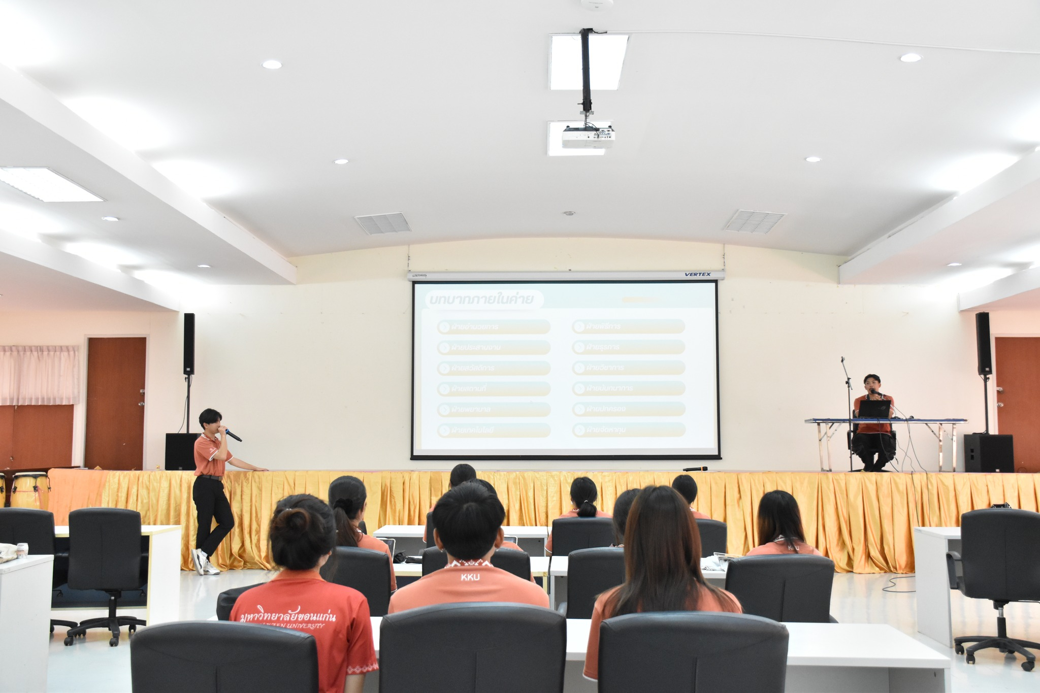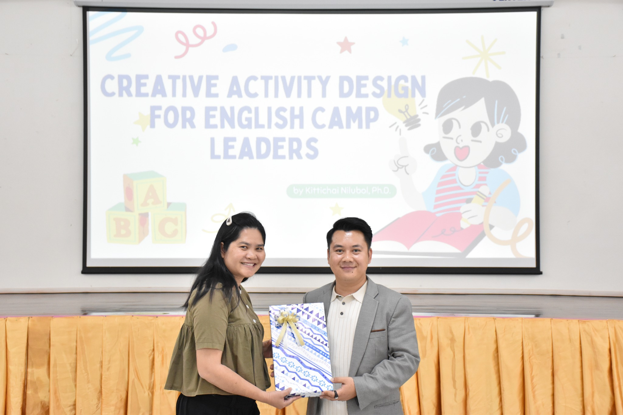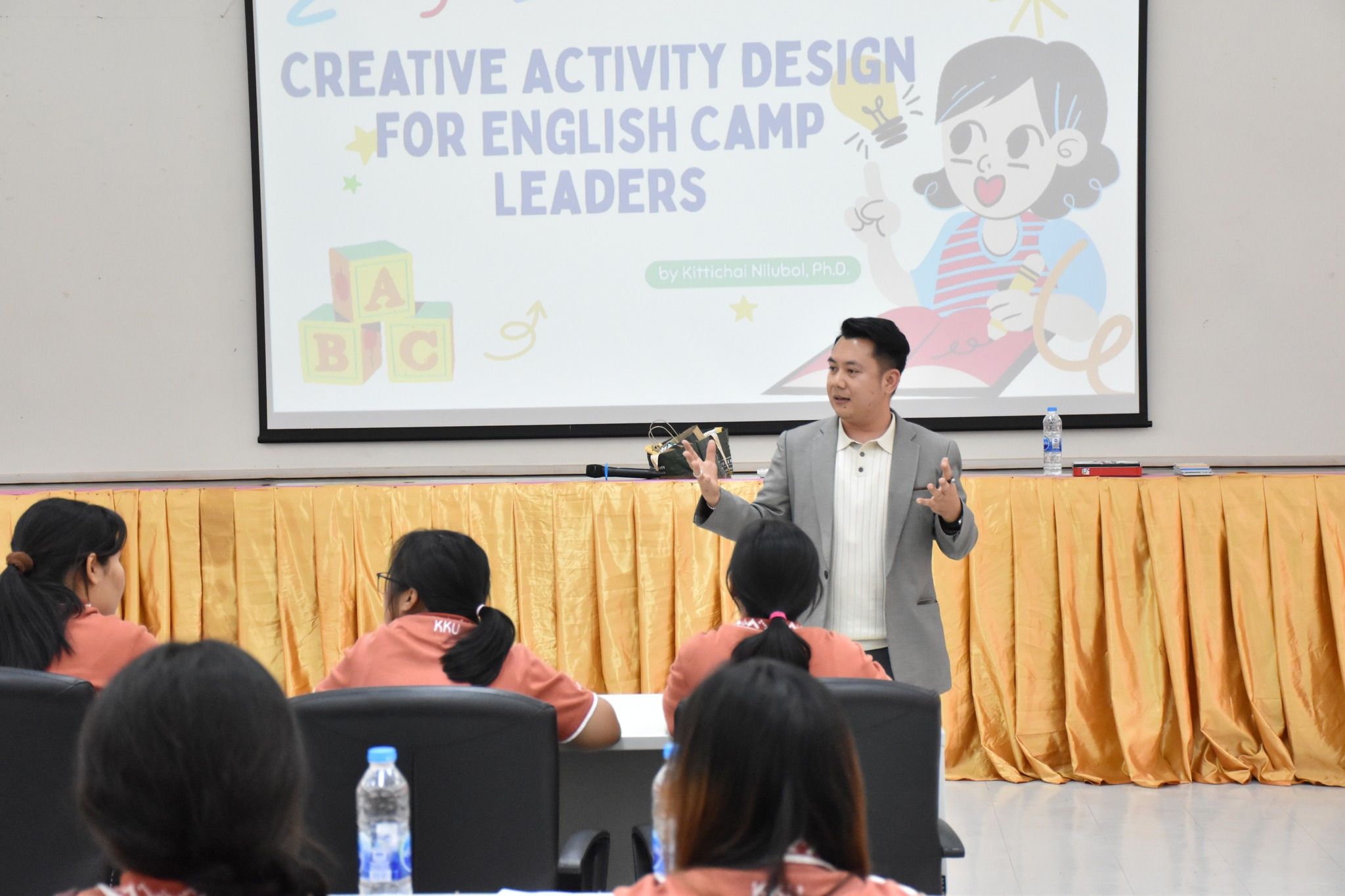 โดยช่วงเช้าเป็นการอบรมในหัวข้อ "ทำค่ายให้มีความสุขด้วยการจัดการอย่างเป็นระบบ" โดยมีวิทยากรให้ความรู้ ได้แก่ นายอัจฉริยวุธ พิมพ์ปัด และ นายธนพล ทองคนทา จากค่ายอัสดูเคชั่น และช่วงบ่ายอบรมในหัวข้อ "English: Play and Learn = Plearn" โดย อาจารย์ ดร.กิตติชัย นิลอุบล อาจารย์ประจำคณะมนุษยศาสตร์และสังคมศาสตร์ มหาวิทยาลัยขอนแก่น