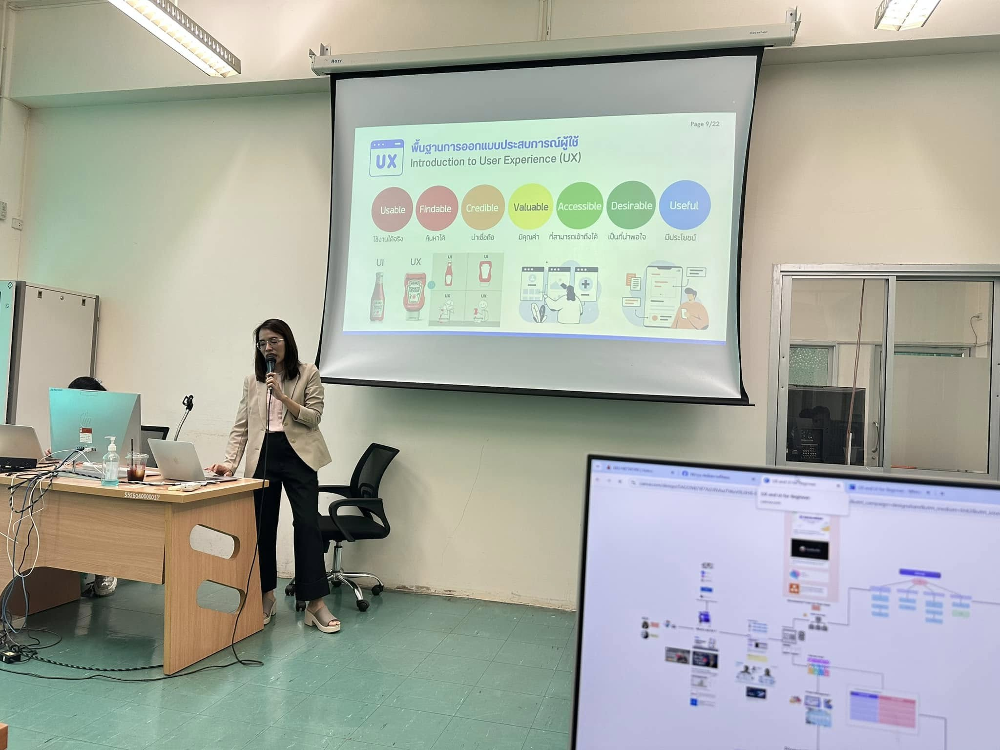 การอบรมครั้งนี้ได้รับเกียรติจากวิทยากรผู้ทรงคุณวุฒิ คุณเยาวลักษณ์ พรมดี และ คุณณิชาภา ศรีอุดม จากบริษัท GRIT Consultant CO.,LTD ซึ่งเป็นผู้เชี่ยวชาญด้าน UX/UI ที่มีประสบการณ์ในการทำงานกับโครงการพัฒนาซอฟต์แวร์ระดับมืออาชีพ โดยเนื้อหาในการอบรมครอบคลุมตั้งแต่พื้นฐานแนวคิด UX/UI กระบวนการออกแบบ การสร้างต้นแบบ (Prototype) การทดสอบผู้ใช้งาน (Usability Testing) ไปจนถึงการประยุกต์ใช้เครื่องมือและเทคนิคต่างๆ ในการออกแบบ UX/UI