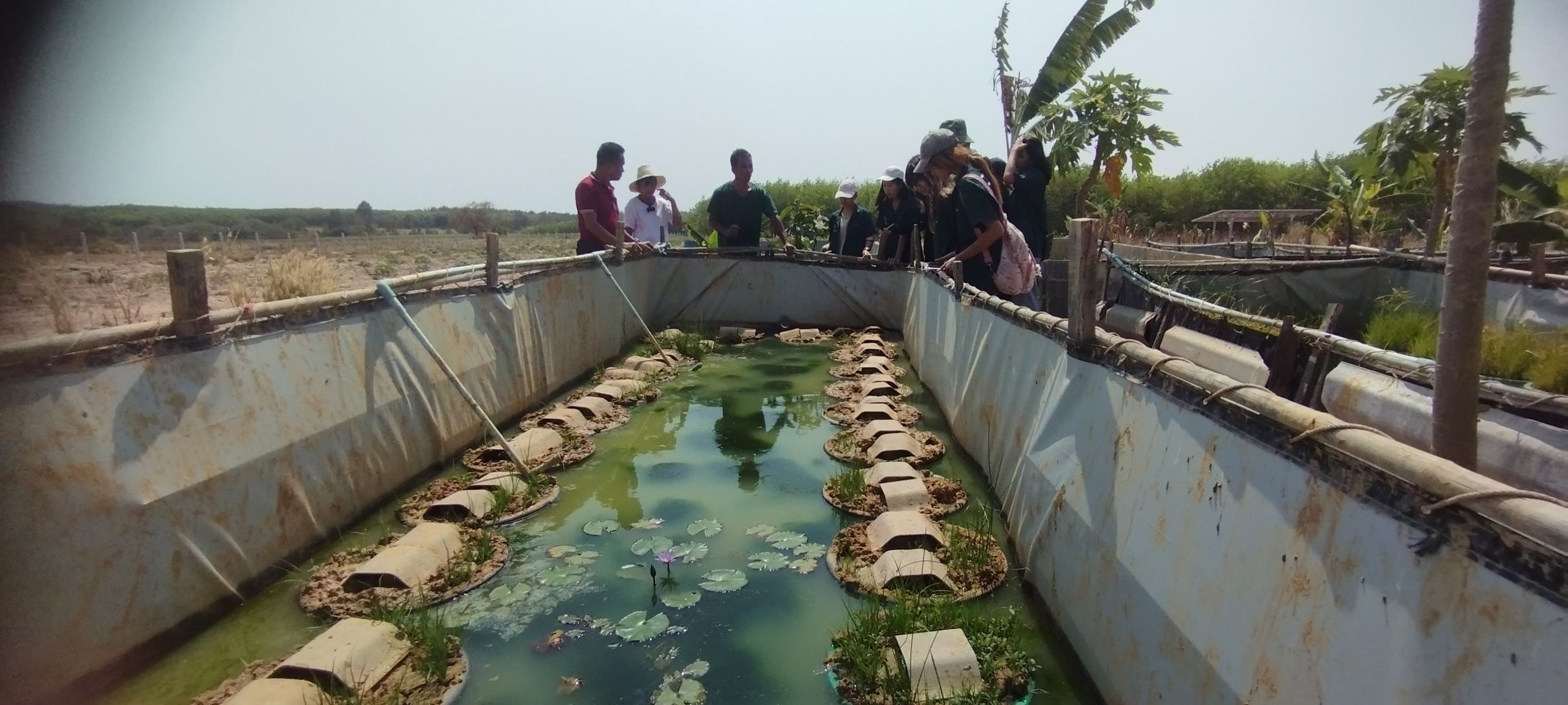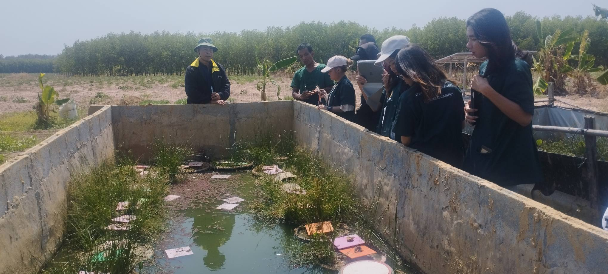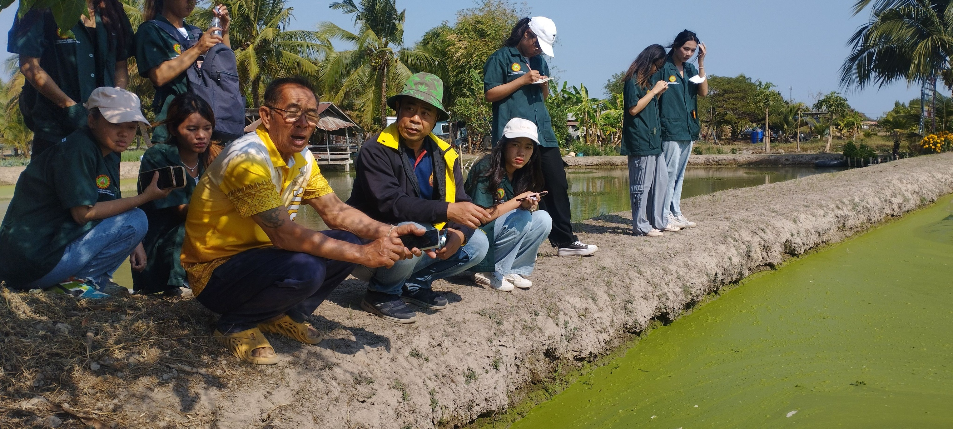จุดหมายแรกของการเดินทางคือ "ฟาร์มไข่ผำทวีรัตน์" ที่ซึ่งนักศึกษาได้สัมผัสกับกระบวนการเพาะเลี้ยงไข่ผำ พืชน้ำขนาดเล็กแต่มากด้วยคุณค่าทางโภชนาการอย่างใกล้ชิด ตั้งแต่การเตรียมบ่อ การคัดเลือกพันธุ์ ไปจนถึงการเก็บเกี่ยวผลผลิต