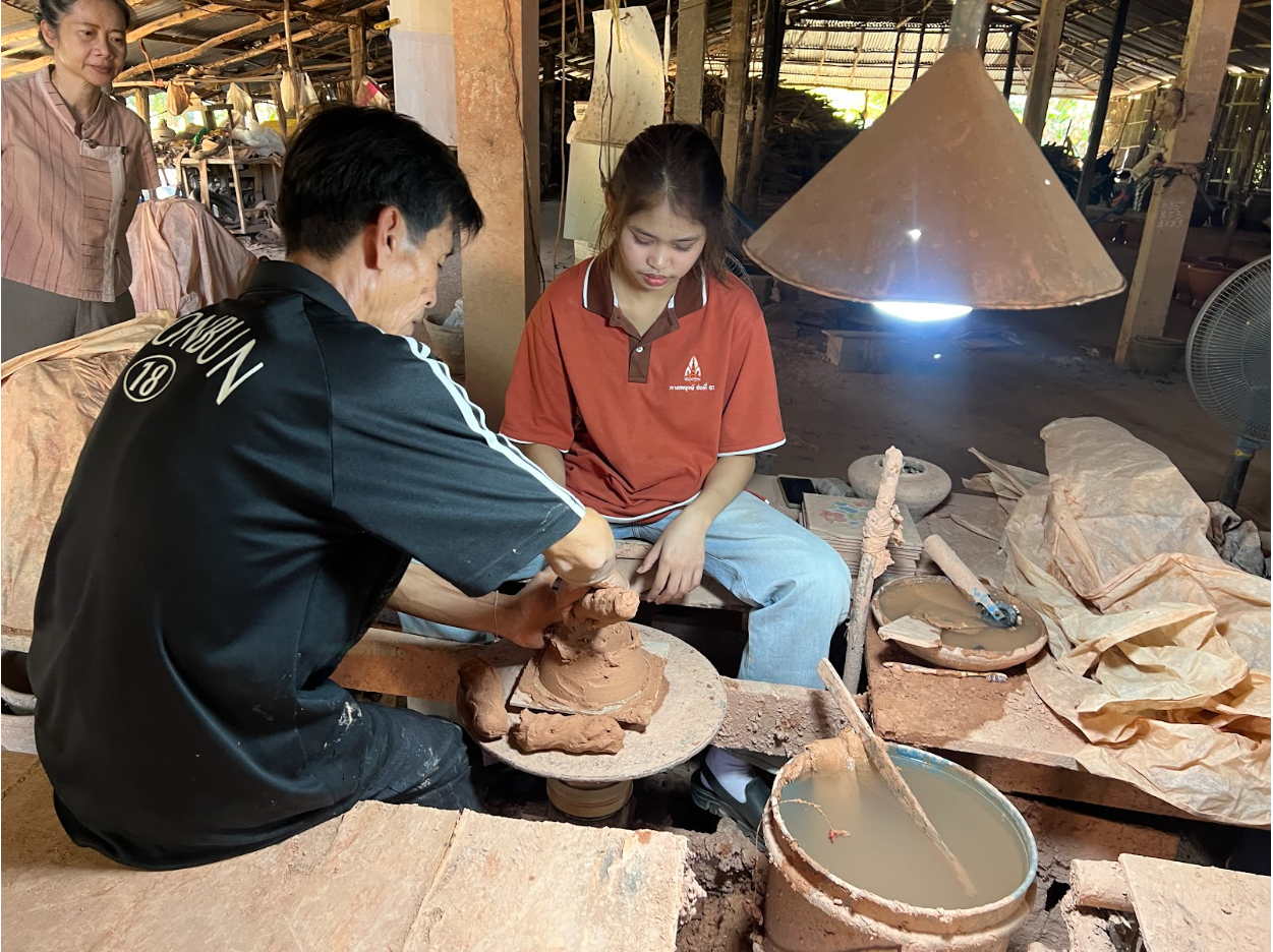 นำโดย ผู้ช่วยศาสตราจารย์ ดร.ศุภลักษณ์ อัครางกูร ผู้รับผิดชอบรายวิชาจิตวิทยาสำหรับอุตสาหกรรมการท่องเที่ยว (IN752206) เพื่อส่งเสริมให้นักศึกษาได้เรียนรู้ในสภาพแวดล้อมจริงและเข้าใจกระบวนการผลิตเครื่องปั้นดินเผาซึ่งเป็นภูมิปัญญาท้องถิ่นที่มีชื่อเสียงของจังหวัดหนองคาย การศึกษานอกสถานที่ครั้งนี้มุ่งเน้นให้นักศึกษาได้เห็นกระบวนการทำงานจริง และเรียนรู้แนวทางในการนำภูมิปัญญาท้องถิ่นมาต่อยอดเป็นนวัตกรรมการท่องเที่ยว