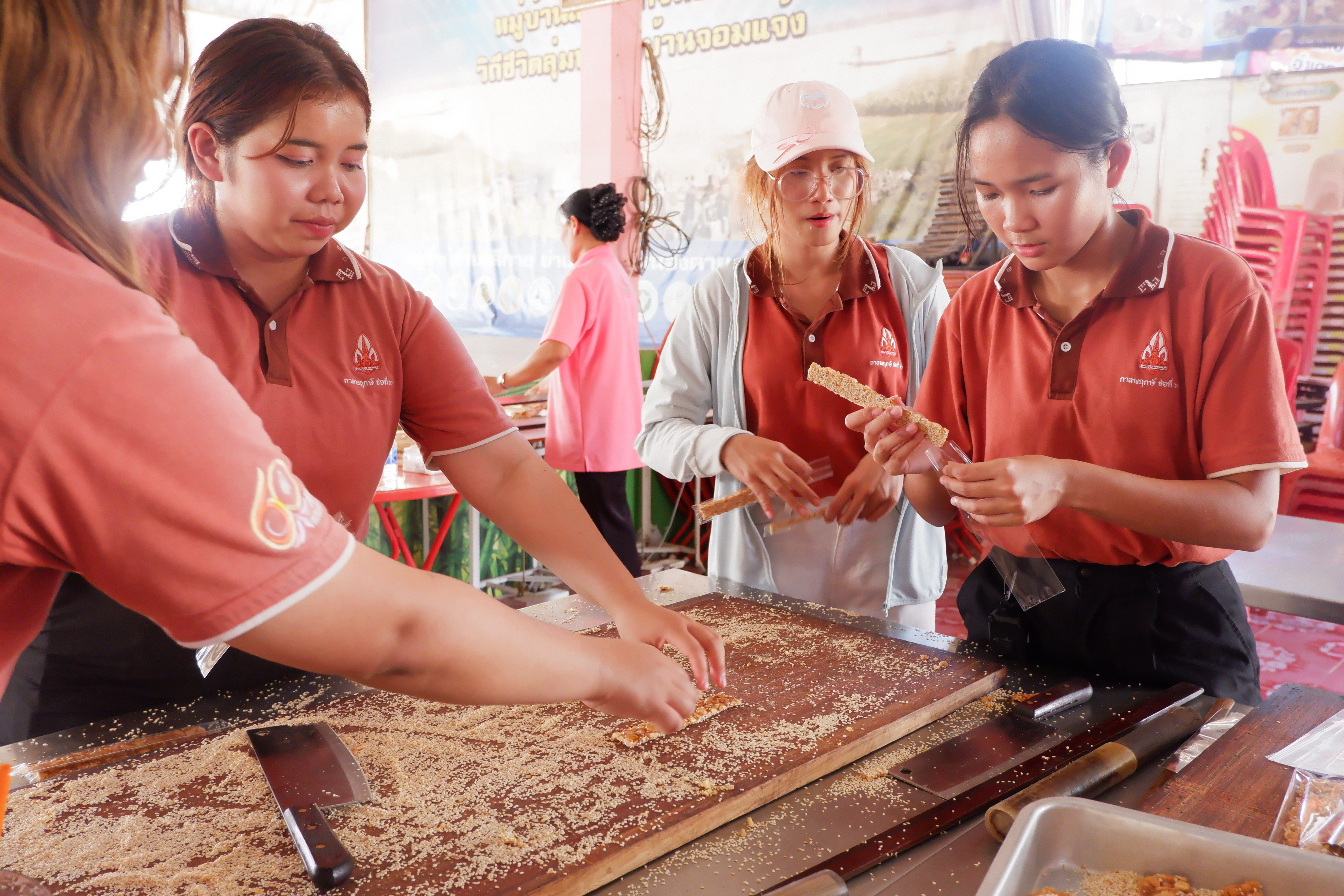 และในภาคบ่าย เวลา 14.00 น. ได้เข้าศึกษาดูงาน “แนวทางการส่งเสริมเศรษฐกิจชุมชน เพื่อยกระดับคุณภาพชีวิตของประชาชนในท้องถิ่น” ได้รับเกียรติจากวิทยากรโดย แม่ยุ้น สุริษา ประธานกลุ่มให้การต้อนรับ พร้อมลงมือปฏิบัติการทำไข่เค็มและถั่วตัด ซึ่งเป็นการสร้างอาชีพที่นำรายได้เข้าสู่ชุมชน ณ วิสาหกิจชุมชนและโฮมสเตย์ บ้านจอมแจ้งหนองคาย