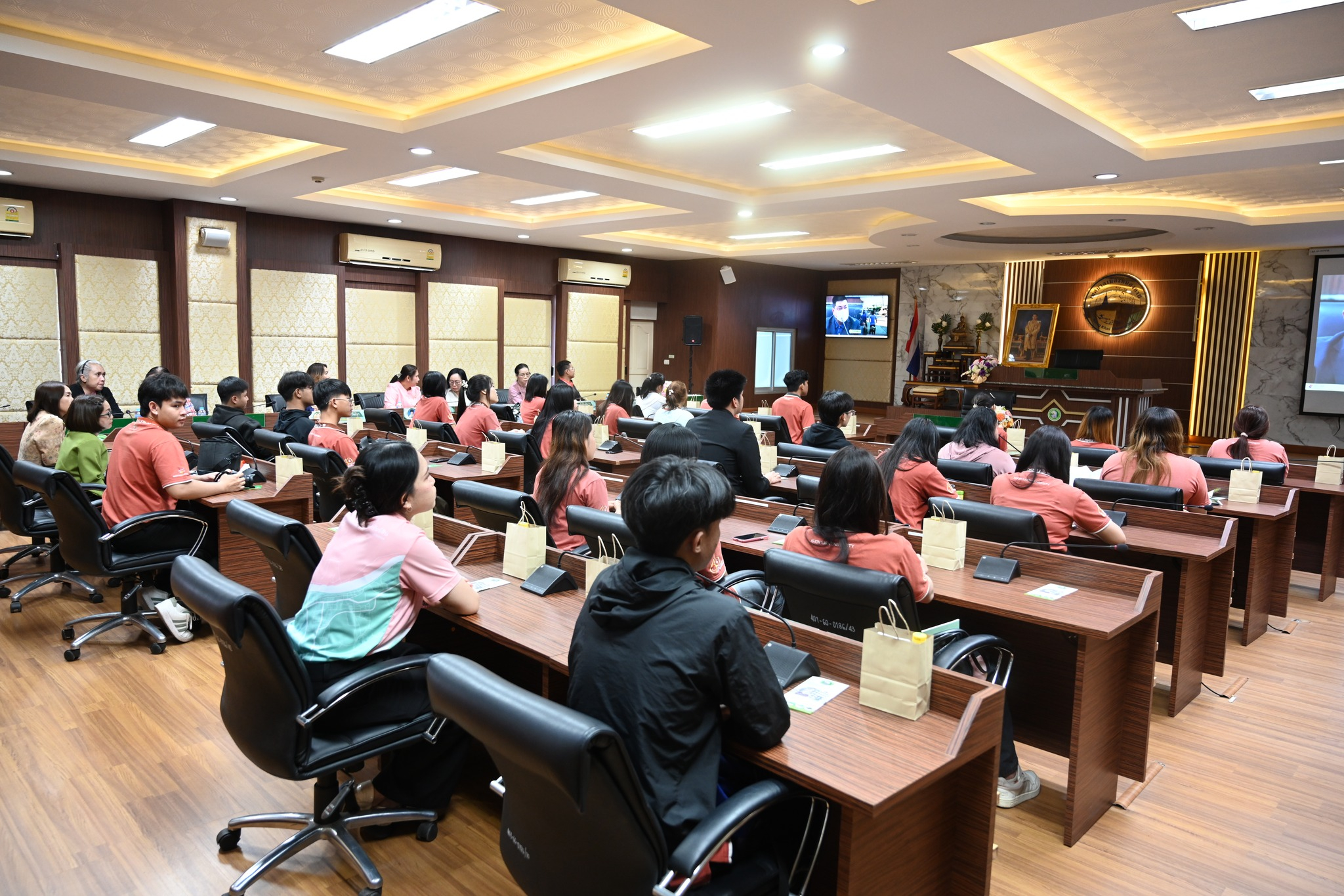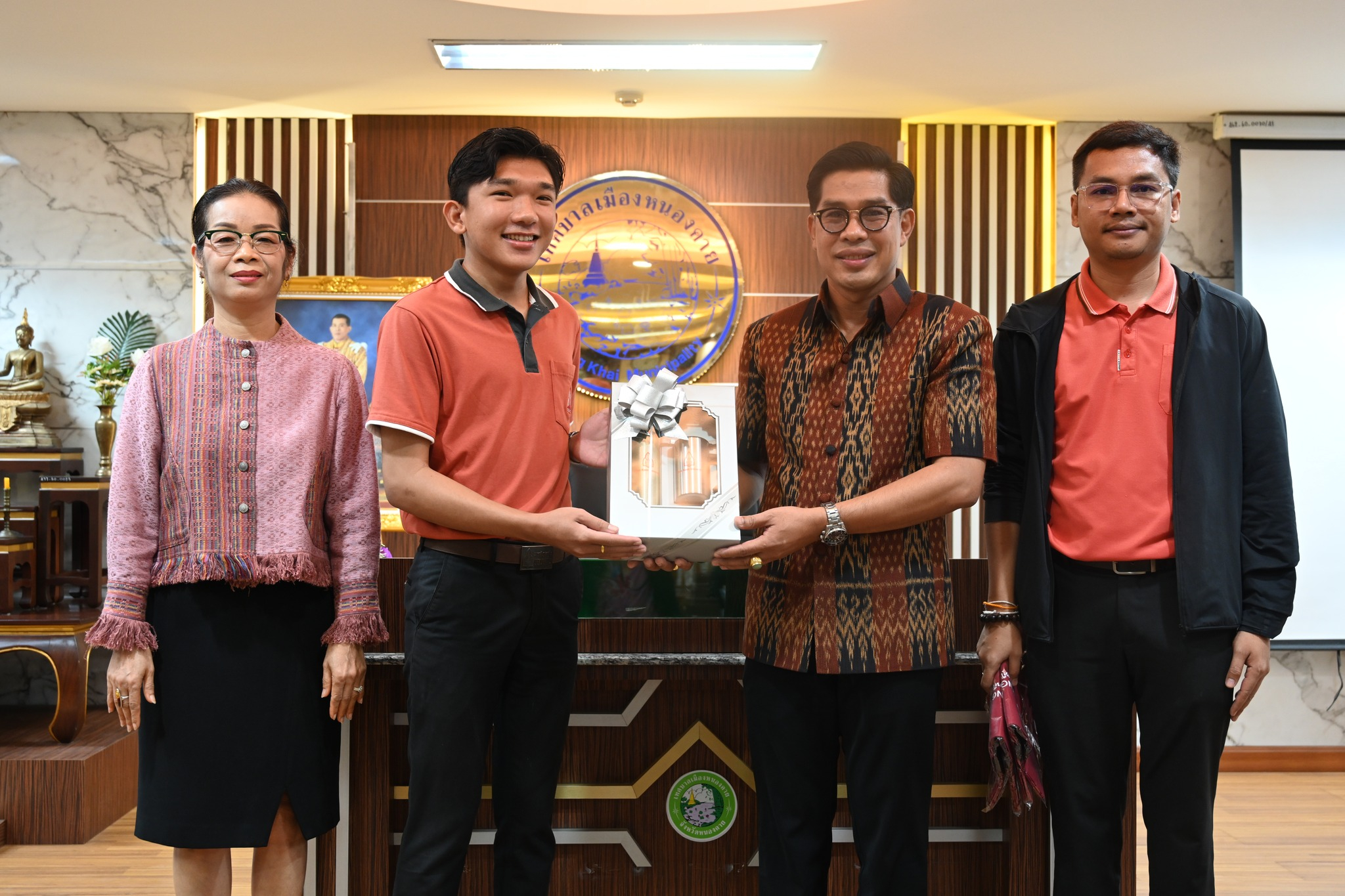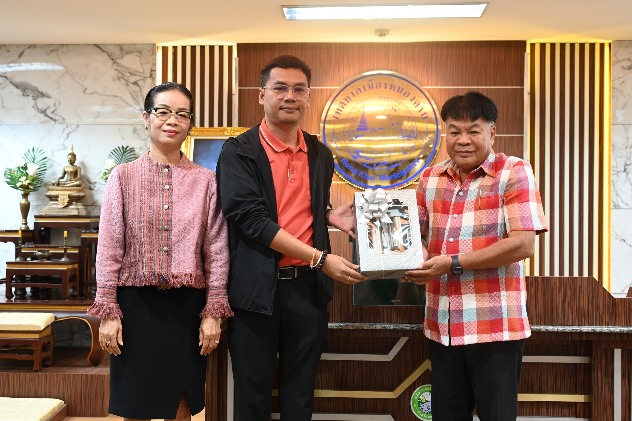 ในภาคเช้า เวลา 09.00 น. นายอุรุยศ เอียสกุล นายกเทศมนตรีเมืองหนองคาย มอบหมายให้ นายการุณย์ เสนจันทร์ฒิไชย ที่ปรึกษานายกเทศมนตรีเมืองหนองคาย พร้อมด้วยหัวหน้าส่วนราชการ และเจ้าหน้าที่ ให้การต้อนรับนักศึกษาโดยได้รับเกียรติจาก นายสมบัติ บินตะคุ ปลัดเทศบาลเมืองหนองคาย เป็นวิทยากรบรรยายในหัวข้อ “การคลังเทศบาล” และเยี่ยมชมหน่วยงาน ณ ห้องประชุมสภาเทศบาลเมืองหนองคาย ชั้น 7 เทศบาลเมืองหนองคาย จังหวัดหนองคาย