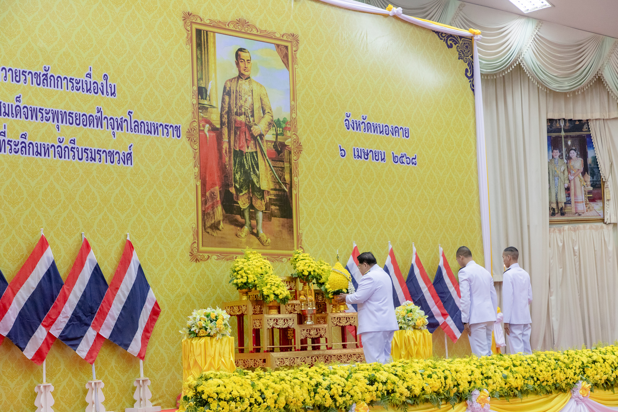 เมื่อวันที่ 6 เมษายน 2568 หอประชุมอนันตนาคราช วิทยาลัยอาชีวศึกษาหนองคาย คณะสหวิทยาการ มหาวิทยาลัยขอนแก่น เข้าร่วมพิธีถวายราชสักการะเนื่องในวันที่ระลึก วันพระบาทสมเด็จพระพุทธยอดฟ้าจุฬาโลกมหาราชและวันที่ระลึกมหาจักรีบรมราชวงศ์ ประจำปีพุทธศักราช 2568 ภายในพิธี นายสมภพ สมิตะสิริ ผู้ว่าราชการจังหวัดหนองคาย เป็นประธานในพิธี วางพานพุ่มถวายราชสักการะหน้าพระบรมฉายาลักษณ์ และนำกล่าวถวายราชสดุดีเฉลิมพระเกียรติ พร้อมด้วยหัวหน้าส่วนราชการ ตุลาการ อัยการ ข้าราชการพลเรือน ทหาร ตำรวจ ผู้บริหารองค์กรปกครองส่วนท้องถิ่น และสมาชิกองค์กรต่าง ๆ ร่วมพิธี