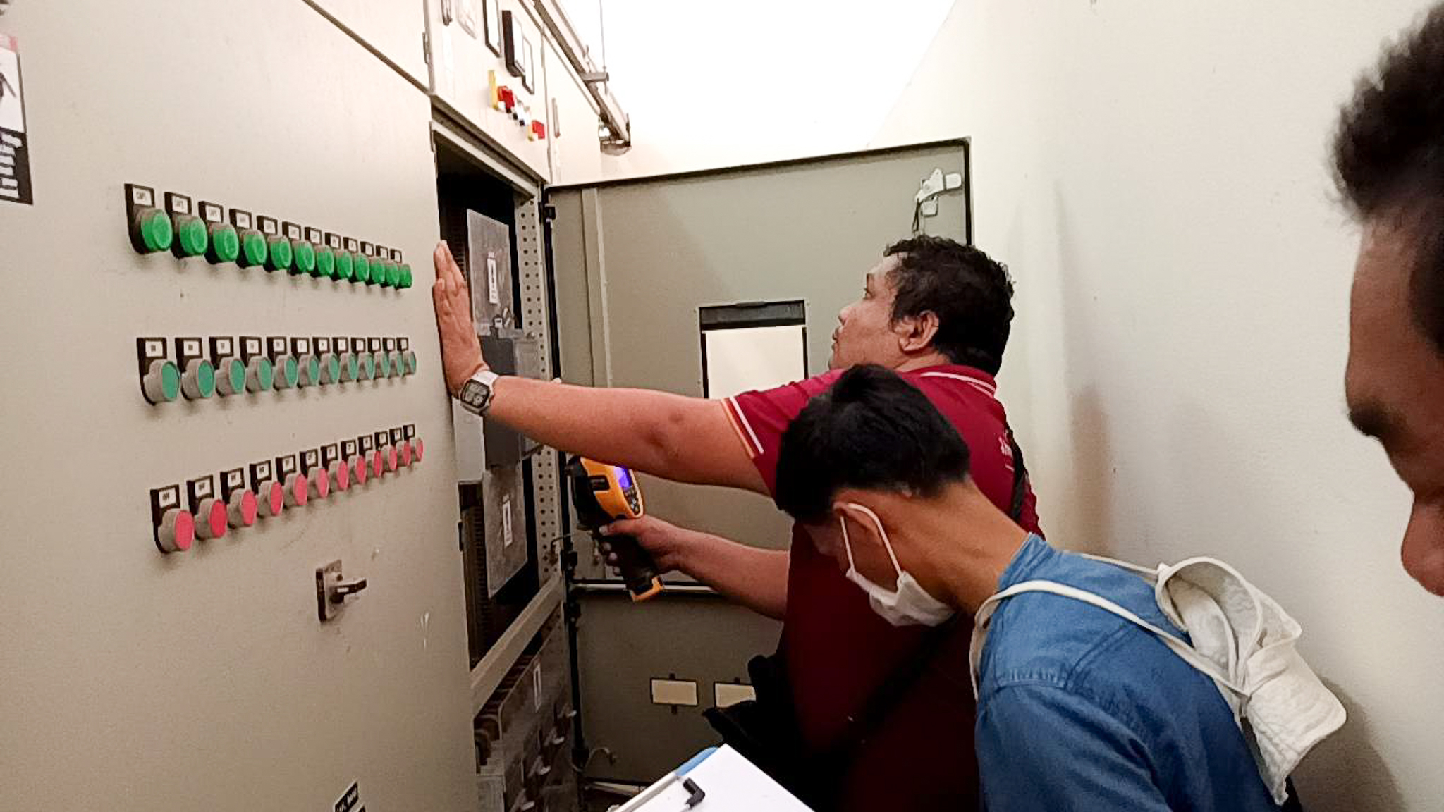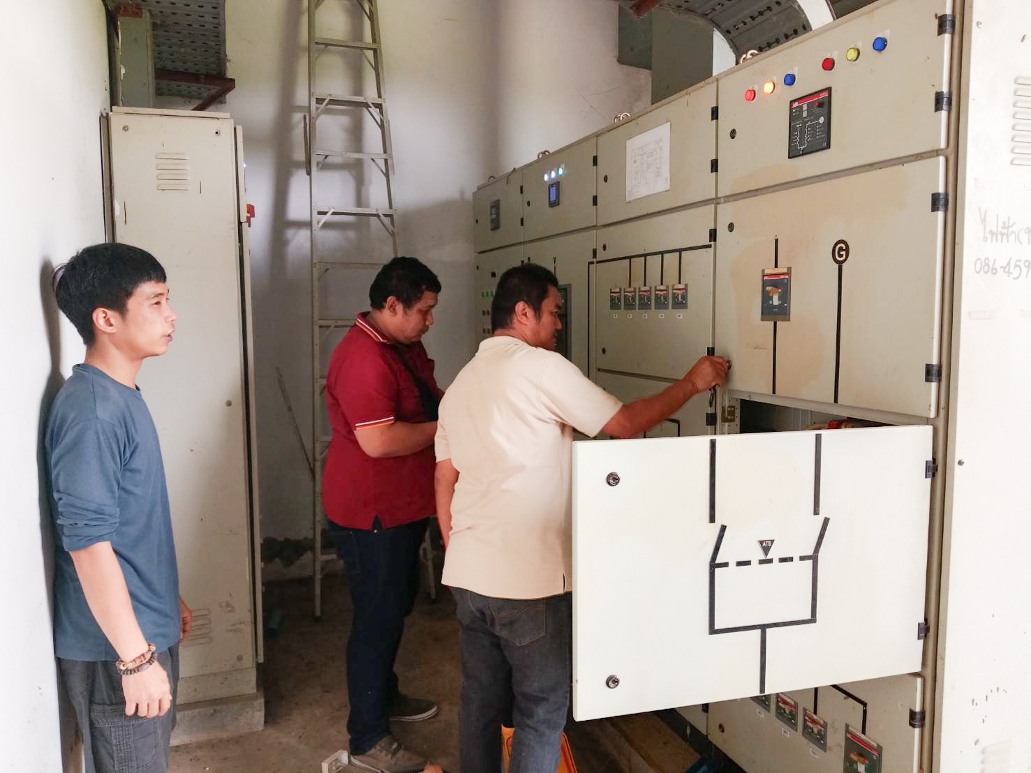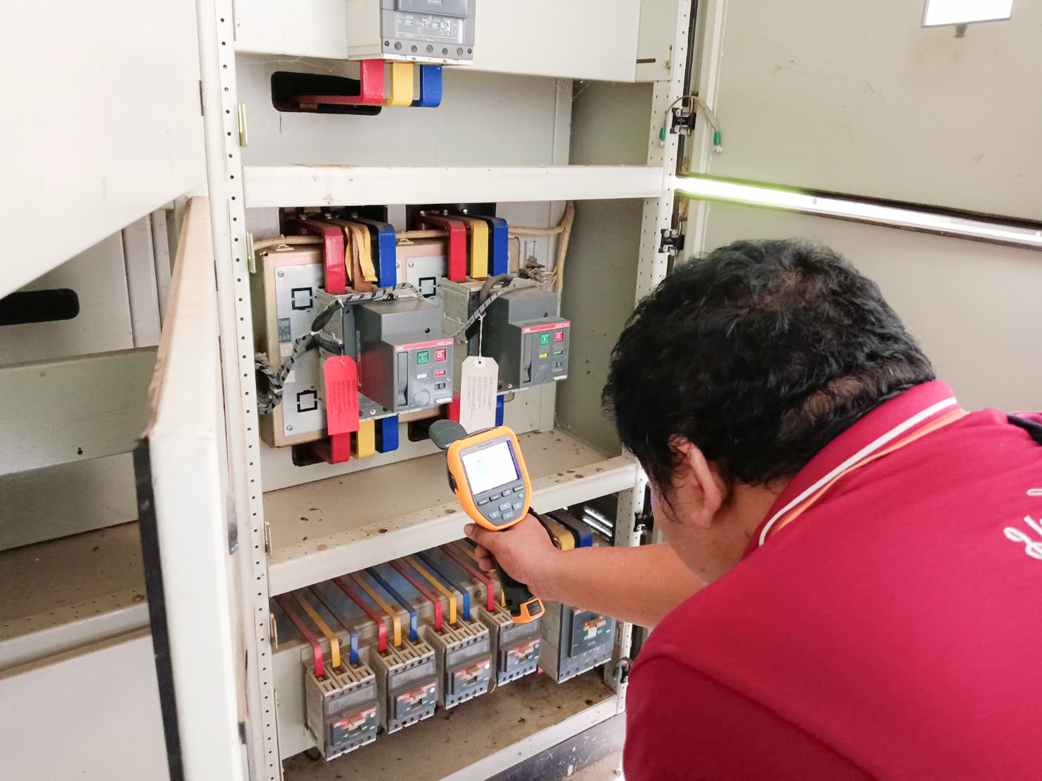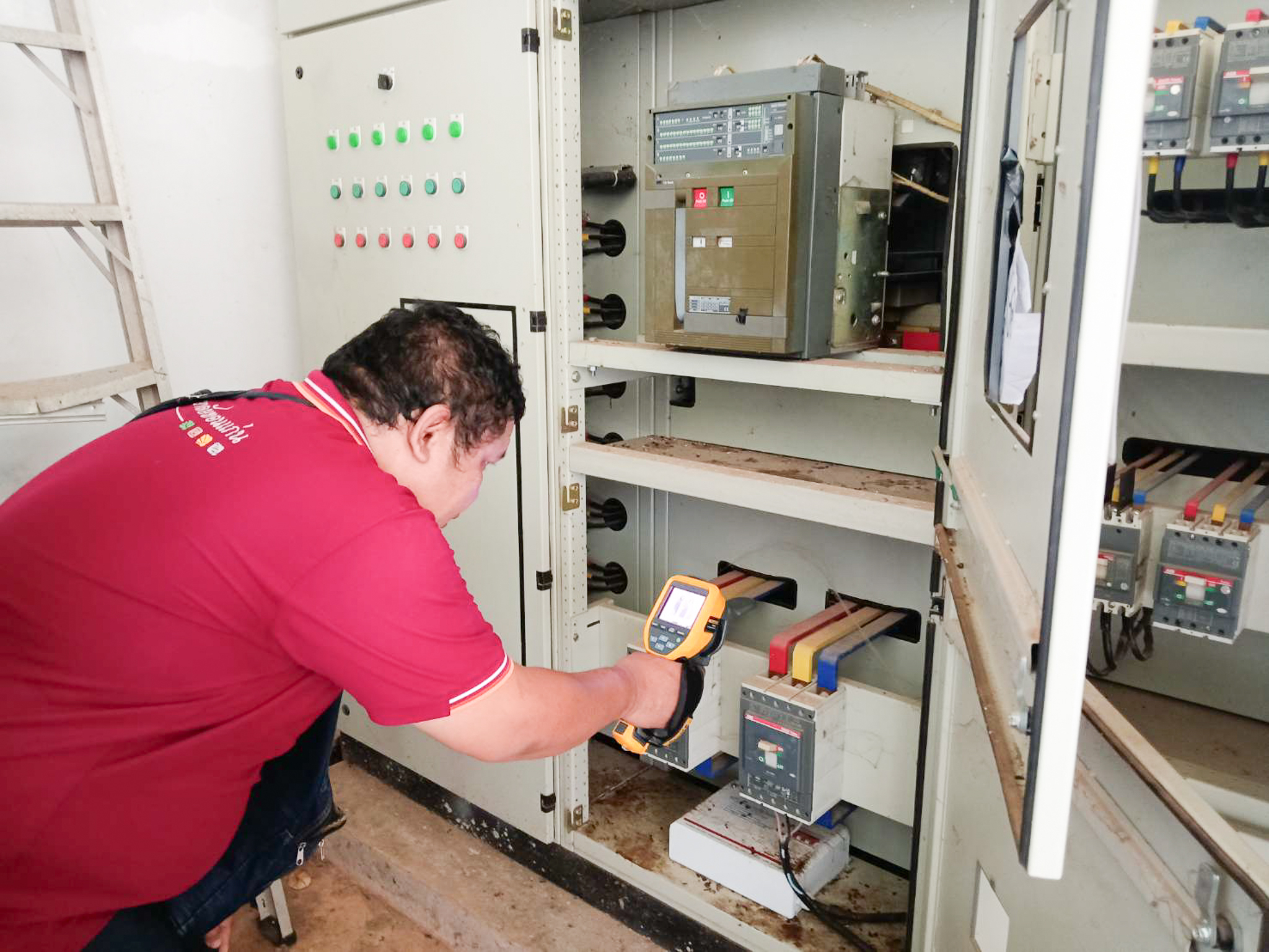 การบำรุงรักษาตู้ควบคุมระบบไฟฟ้า : เจ้าหน้าที่ได้เข้าตรวจสอบและบำรุงรักษาตู้ควบคุมระบบไฟฟ้า (MDB) ภายในอาคารทุกจุดอย่างละเอียด เพื่อให้มั่นใจว่าระบบจ่ายไฟฟ้าภายในคณะฯ มีความเสถียร ปลอดภัย และพร้อมรองรับการใช้งานได้อย่างเต็มประสิทธิภาพ ลดความเสี่ยงจากเหตุไฟฟ้าขัดข้อง