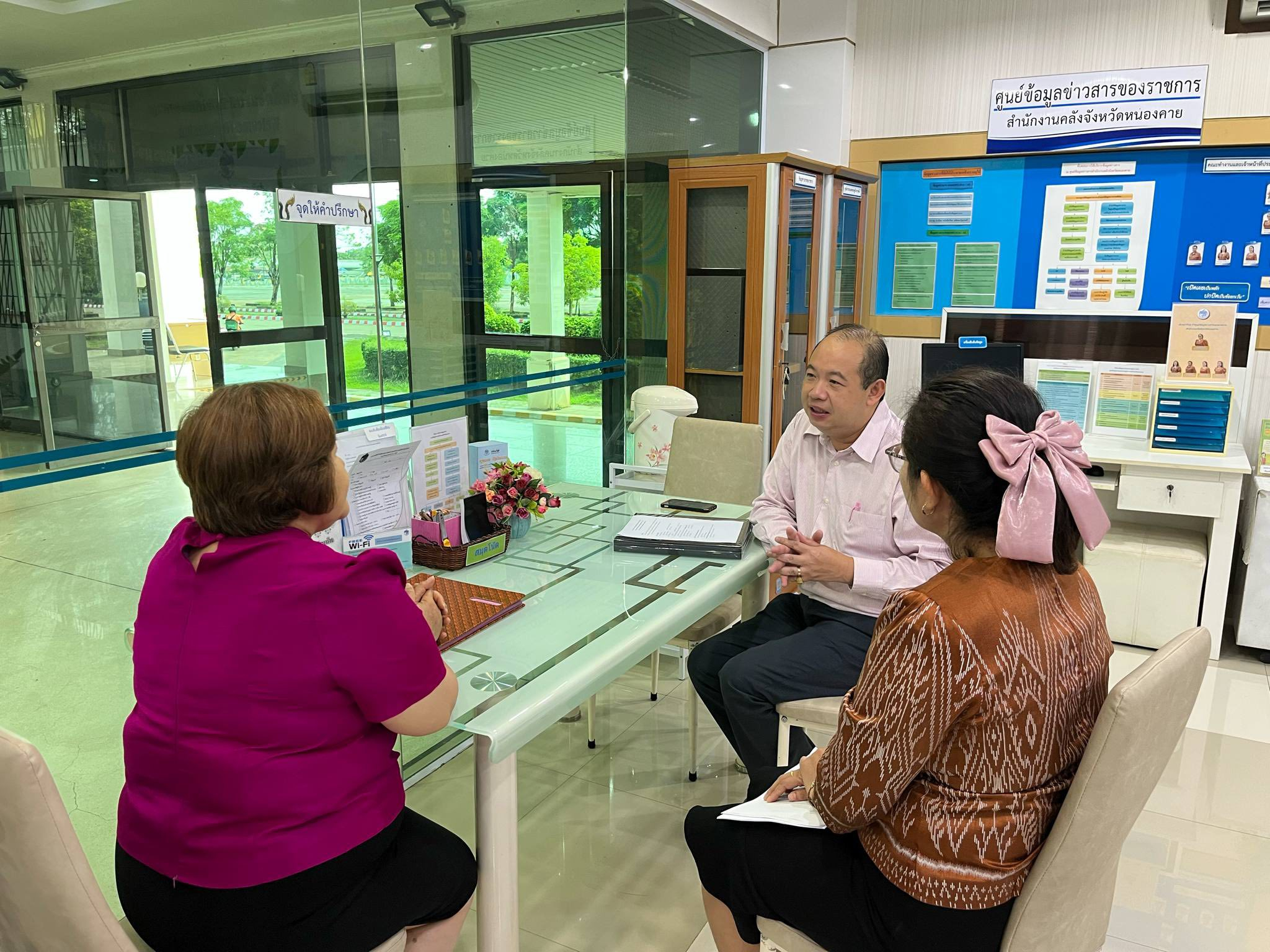 วันที่ 6 พฤษภาคม 2568 รองศาสตราจารย์ ดร.ธเนศ วัฒนกูล หัวหน้าสาขาสังคมศาสตร์ และประธานหลักสูตรเศรษฐศาสตรมหาบัณฑิต สาขาเศรษฐศาสตร์ระหว่างประเทศและการท่องเที่ยว คณะสหวิทยาการ มหาวิทยาลัยขอนแก่น ได้เข้าพบและสัมภาษณ์คลังจังหวัดหนองคาย พร้อมด้วยคณะหัวหน้ากลุ่มงาน สำนักงานคลังจังหวัดหนองคาย เพื่อรวบรวมข้อมูลเชิงลึกเกี่ยวกับความต้องการของผู้ใช้บัณฑิตและคุณลักษณะเฉพาะของเศรษฐศาสตรบัณฑิตที่ตลาดแรงงานต้องการในปัจจุบัน