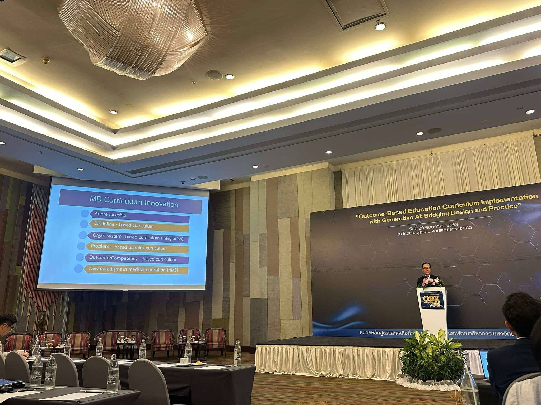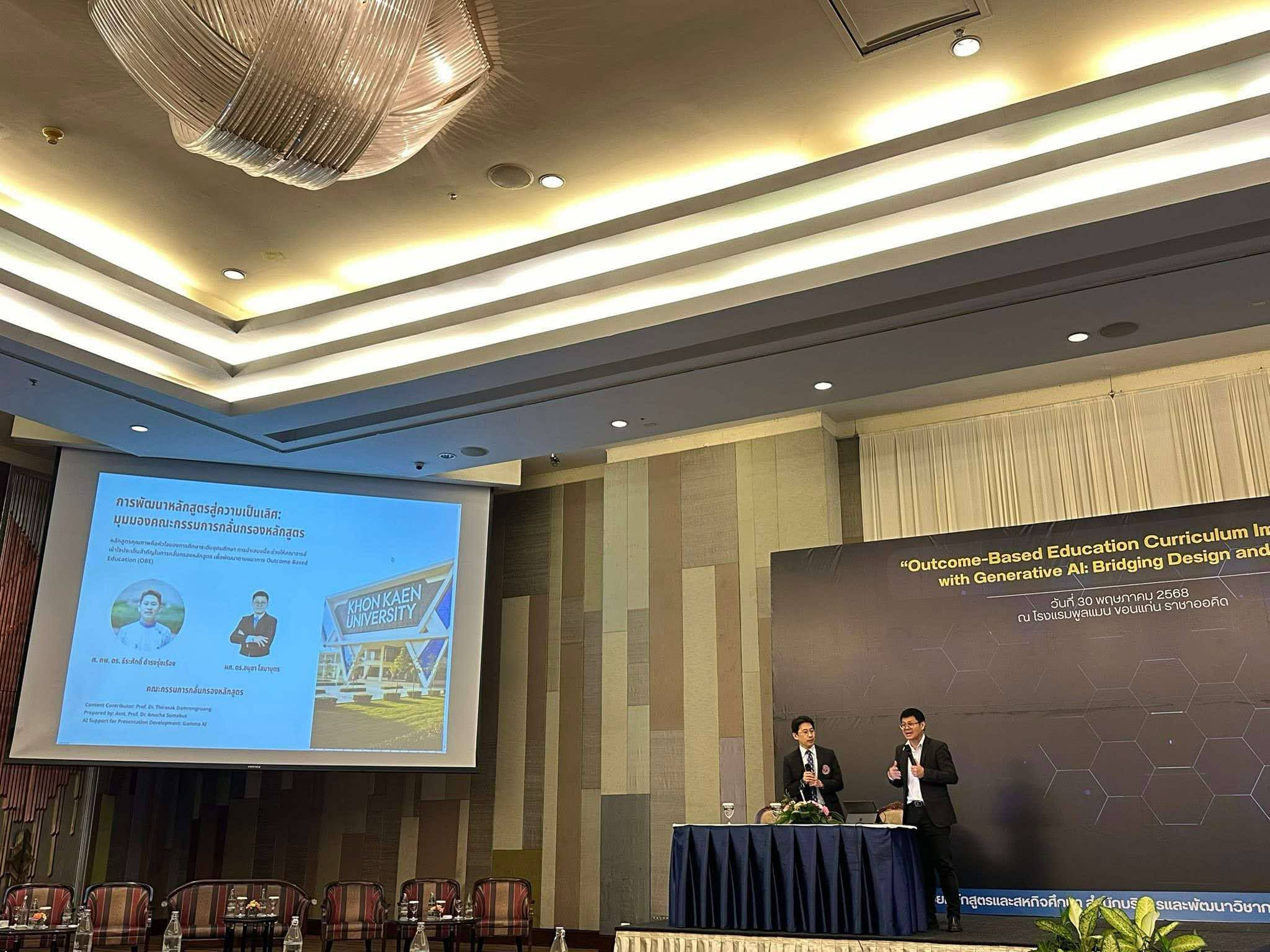 เมื่อวันที่ 30 พฤษภาคม 2568 ณ โรงแรมพูลแมน ขอนแก่น ราชาออคิด สำนักบริหารและพัฒนาวิชาการ มหาวิทยาลัยขอนแก่น ได้จัดโครงการสัมมนาเชิงปฏิบัติการ "Outcome-Based Education Curriculum Implementation with Generative AI: Bridging Design and Practice" โดยได้รับเกียรติจาก รศ.นพ.ชาญชัย พานทองวิริยะกุล อธิการบดีมหาวิทยาลัยขอนแก่น เป็นประธานในพิธีเปิด และ ผศ.ดร.เด่นพงษ์ สุดภักดี รองอธิการบดีฝ่ายการศึกษาและดิจิทัล กล่าวรายงานถึงความสำคัญและวัตถุประสงค์ของโครงการ
