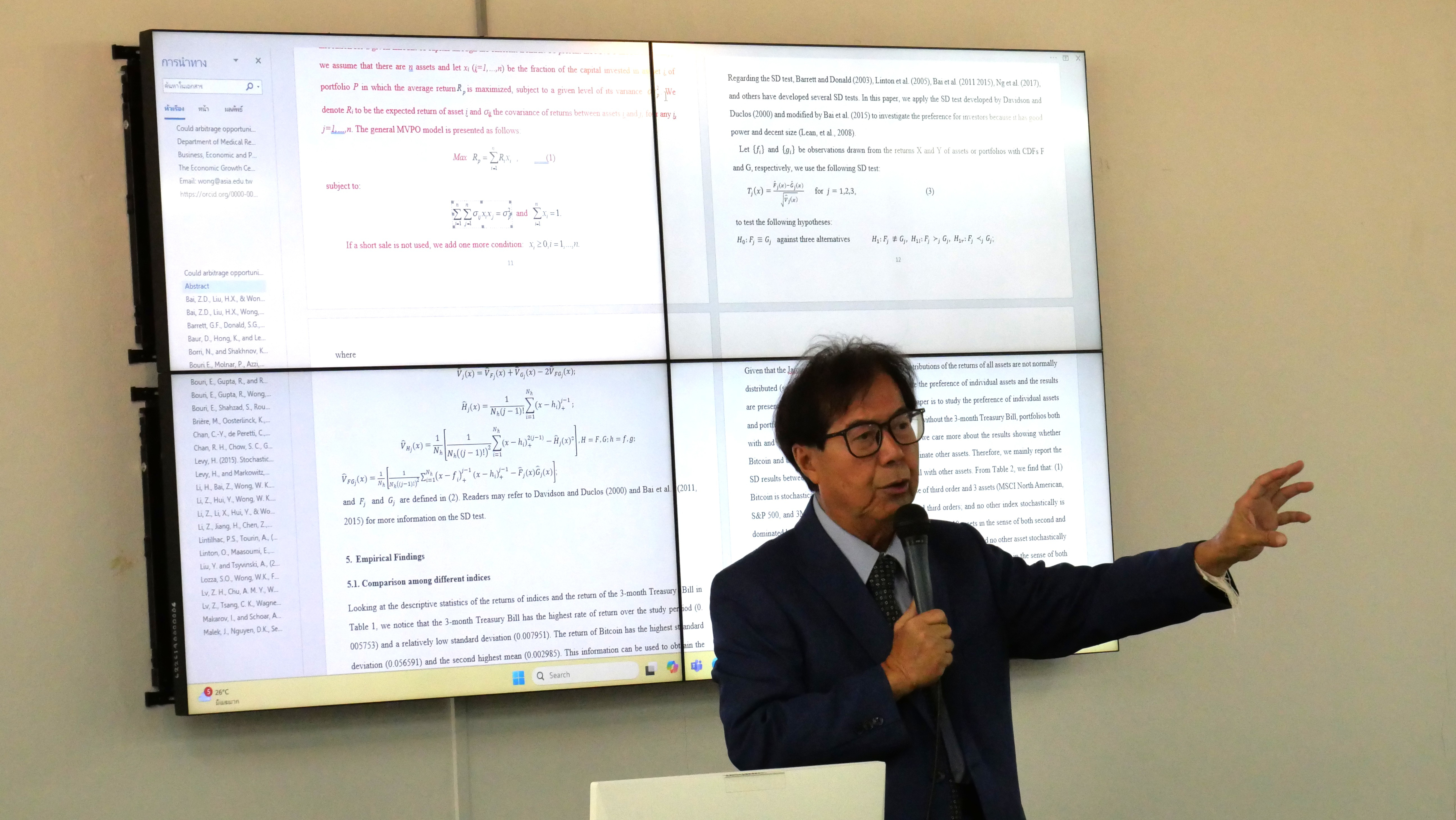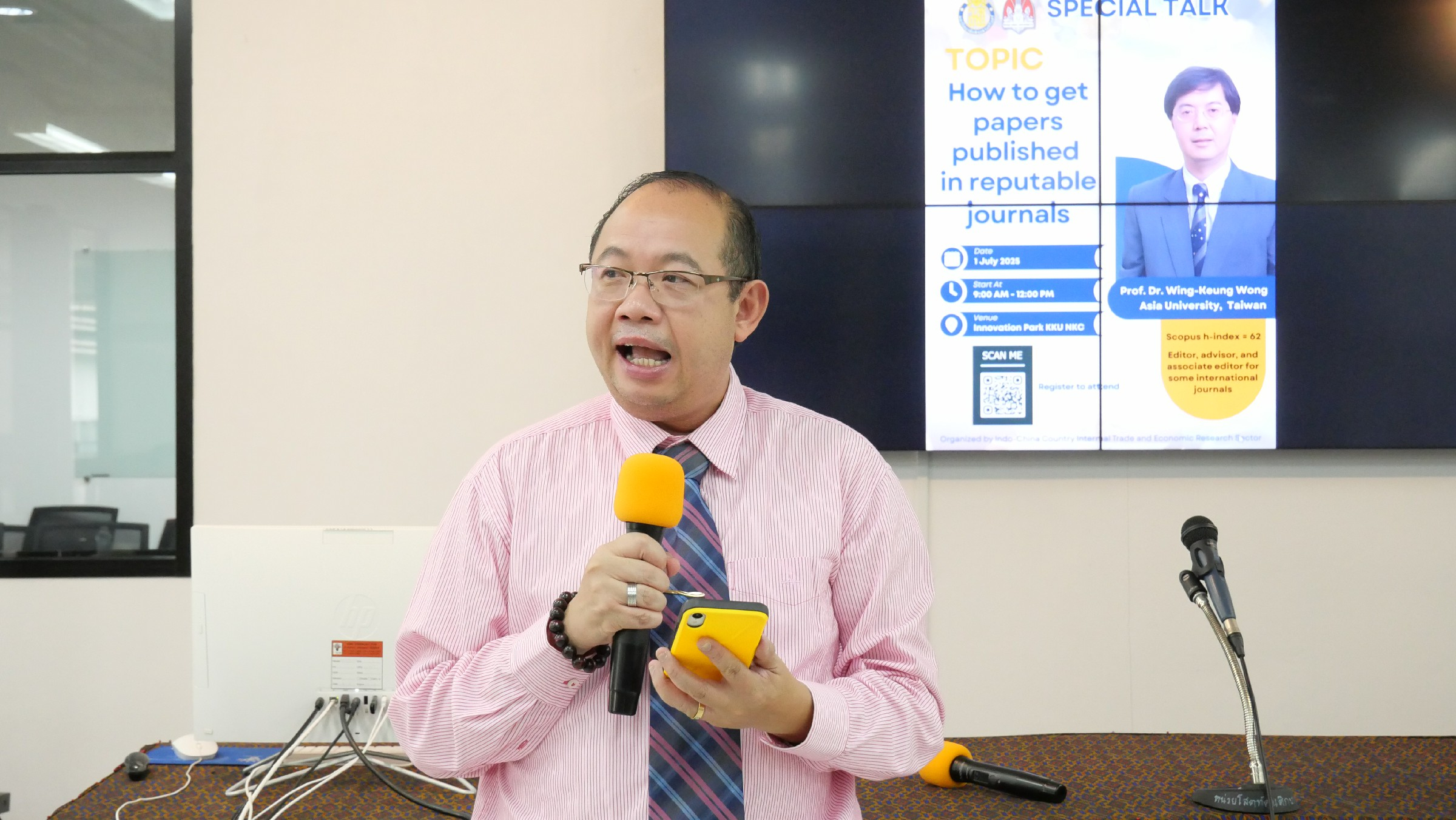 จากนั้นในวันที่ 1 กรกฎาคม 2568 ณ Innovation Park คณะสหวิทยาการ ศาสตราจารย์ ดร. Wing-Keung Wong ได้บรรยายในหัวข้อ “How to get papers published in reputable journals” ซึ่งเป็นประโยชน์อย่างยิ่งสำหรับนักศึกษา นักวิจัยและนักวิชาการที่ต้องการเผยแพร่ผลงานในวารสารระดับนานาชาติ และในหัวข้อ “Statistics Trend in Tourism” ซึ่งเป็นการนำเสนอแนวโน้มทางสถิติที่สำคัญในการวิเคราะห์และคาดการณ์ทิศทางการท่องเที่ยวในอนาคต โดยได้รับเกียรติจาก รองศาสตราจารย์ ดร. ธเนศ วัฒนกูล หัวหน้าสาขาวิชาสังคมศาสตร์ กล่าวให้การต้อนรับวิทยากรและเปิดโครงการ