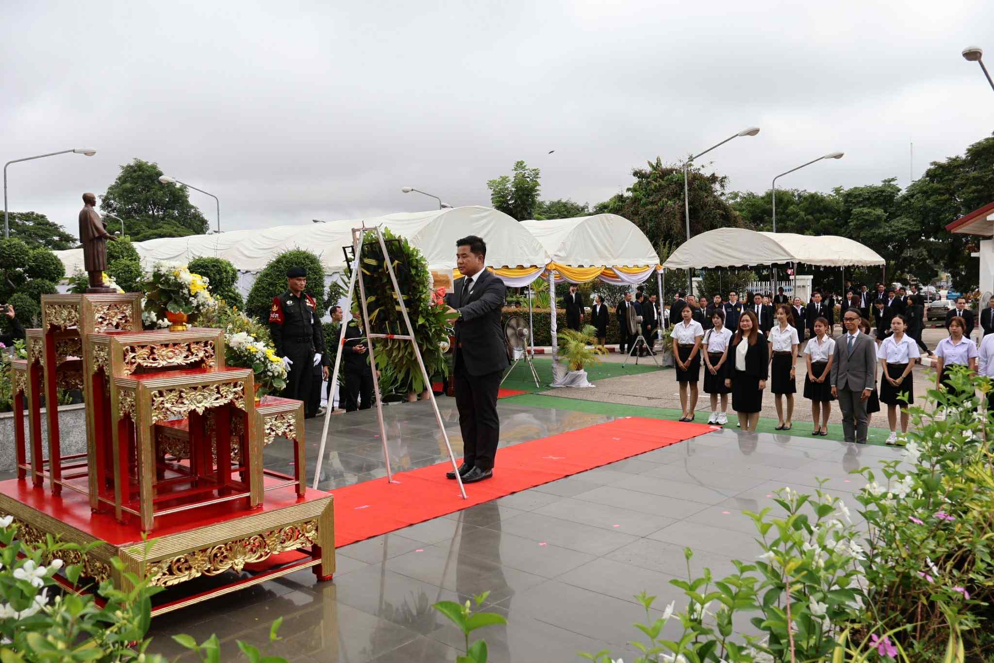 คณะสหวิทยาการ มหาวิทยาลัยขอนแก่น นำโดย อาจารย์จักรวาล กลีบบัว รองคณบดี, อาจารย์อภิรดี มิ่งวงศ์ หัวหน้าสาขาวิชานิติศาสตร์ และผู้ช่วยศาสตราจารย์ ดร.ดามร คำไตรย์ ประธานหลักสูตรนิติศาสตรบัณฑิต พร้อมด้วยนักศึกษาสาขานิติศาสตร์ ได้เข้าร่วมวางพวงมาลาเพื่อถวายสักการะ. การเข้าร่วมพิธีในครั้งนี้ไม่เพียงแต่เป็นการแสดงความเคารพและตระหนักถึงคุณูปการอันใหญ่หลวงของพระเจ้าบรมวงศ์เธอ กรมหลวงราชบุรีดิเรกฤทธิ์ ผู้ทรงวางรากฐานระบบกฎหมายและกระบวนการยุติธรรมของประเทศไทยเท่านั้น แต่ยังเป็นการปลูกฝังให้นักศึกษากฎหมายรุ่นใหม่ได้ซึมซับและยึดมั่นในหลักนิติธรรม คุณธรรม และจริยธรรมแห่งวิชาชีพสืบไป