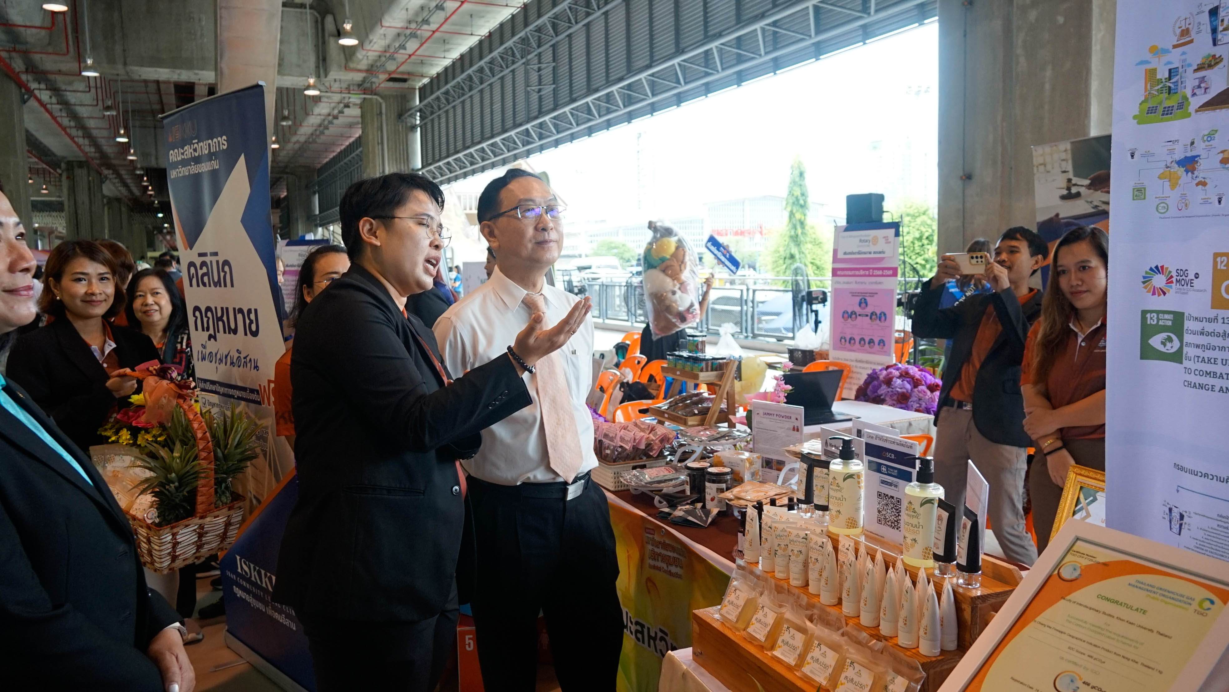 เมื่อวันที่ 5 กันยายน 2568 ที่ผ่านมา ณ บริเวณลานชั้น 1 สถานีรถไฟขอนแก่น รศ.ดร.วัลลภา วงศ์ศีลธรรม รองคณบดีคณะสหวิทยาการ ได้นำทีมบุคลากรและนักศึกษาเข้าร่วมกิจกรรม "มหกรรมมหาวิทยาลัยขอนแก่นบริการชุมชน" ซึ่งจัดขึ้นภายใต้โครงการบริการวิชาการเพื่อสร้างประโยชน์ให้สังคม (Societal Contributions)